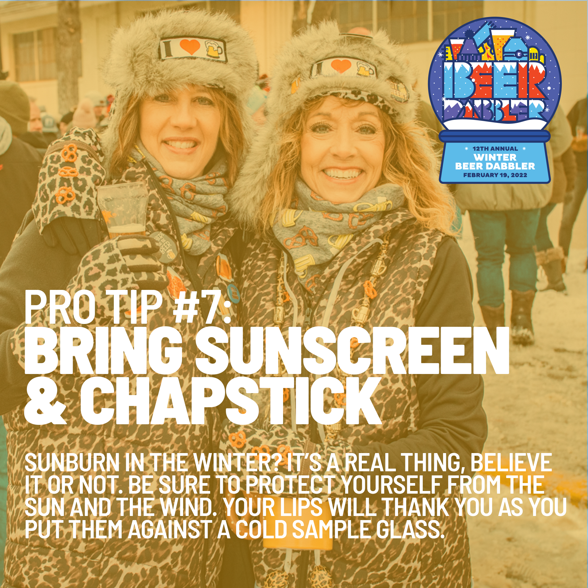 Sunburn in the winter? It’s a real thing, believe it or not. Be sure to protect yourself from the sun and the wind. Your lips will thank you as you put them against a cold sample glass.