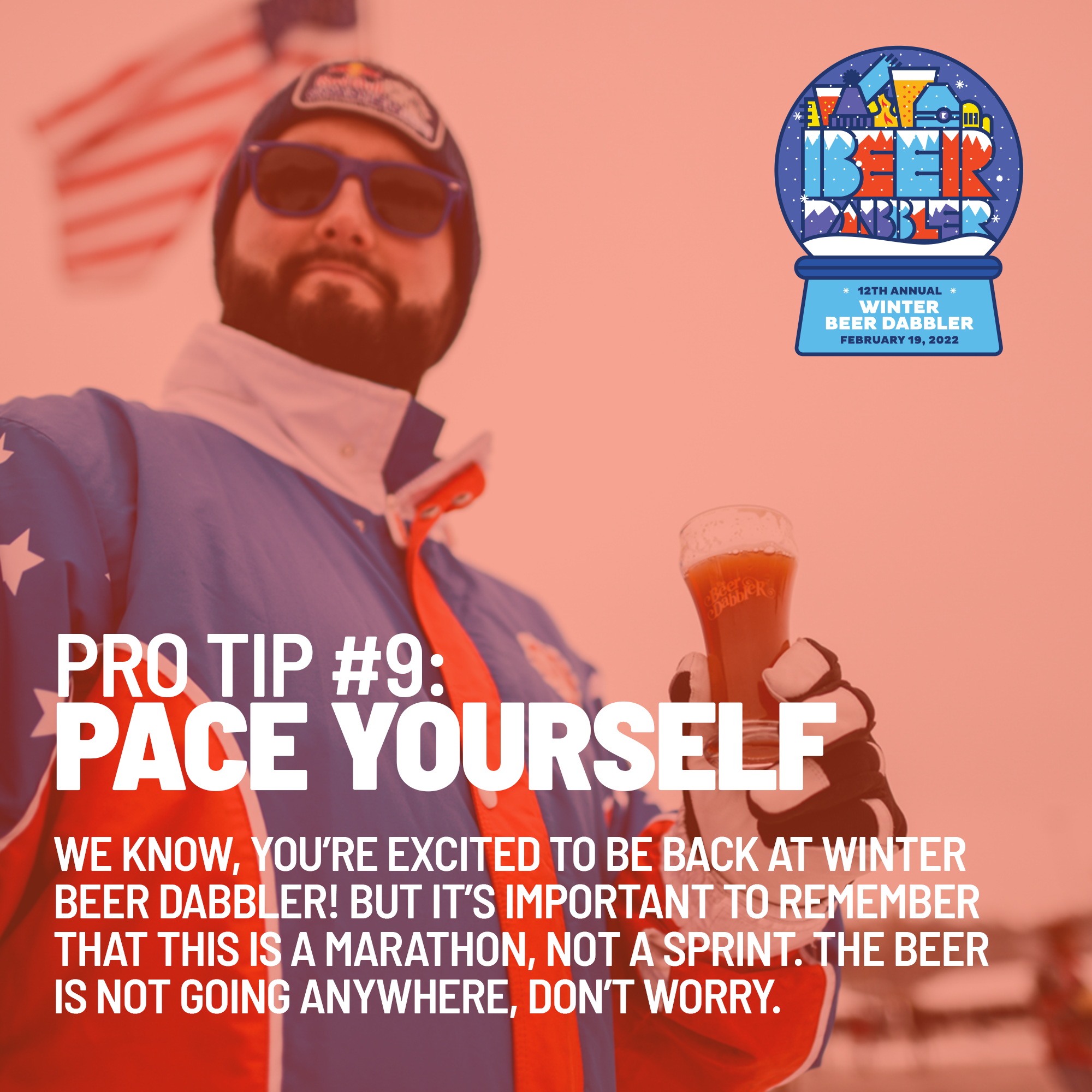 We know, you’re excited to be back at Winter Beer Dabbler! But it’s important to remember that this is a marathon, not a sprint. The beer is not going anywhere, don’t worry.