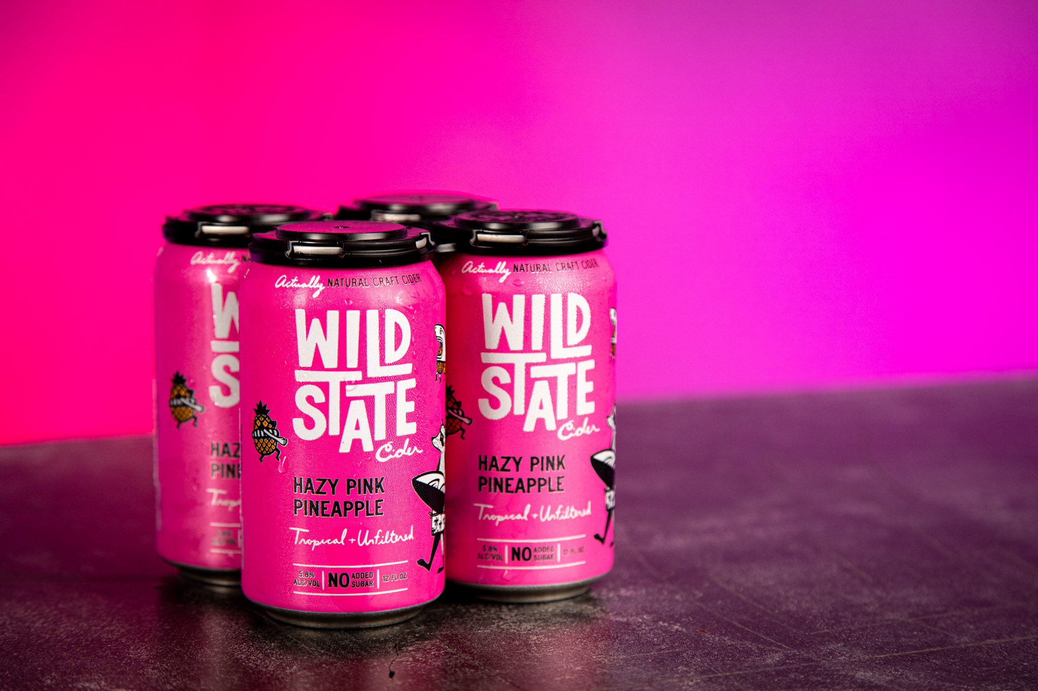 Wild State Cider Hazy Pink Pineapple 4pk 12oz – This tropical vacation of a cider is left unfiltered for a hazy look and juicy mouthfeel. Made with Costa Rican pineapples and fresh dragon fruit. 6% ABV
