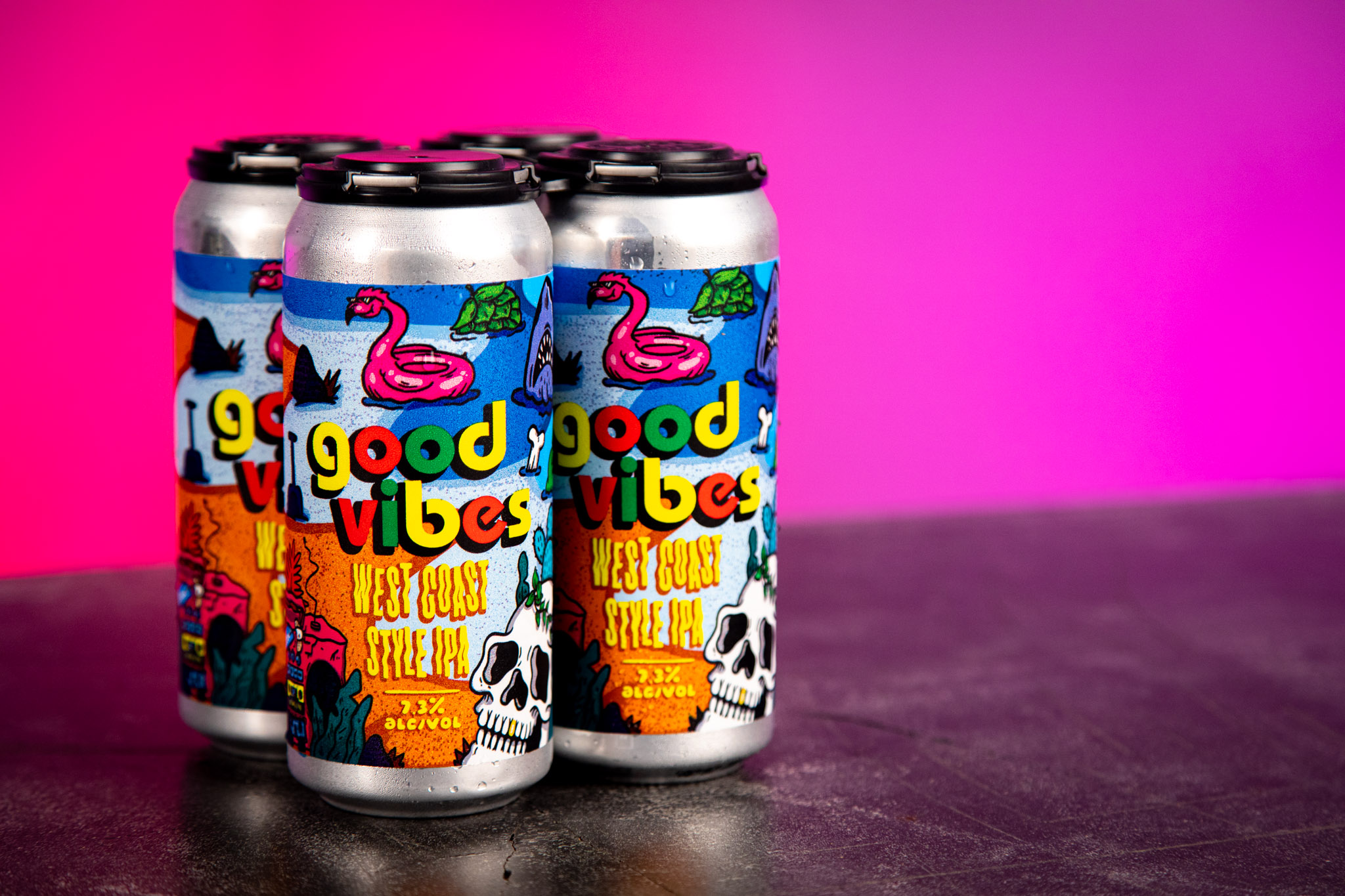 Voodoo Brewing Good Vibes West Coast IPA 4pk 16oz – Good Vibes is hopped five times in the kettle & double dry hopped to produce bodacious dank fruit notes. Voodoo Brewing also used gnarly amounts of Galaxy, Amarillo, Mosaic & Apollo to make it the beloved West Coast-style IPA it is. 7.3% ABV
