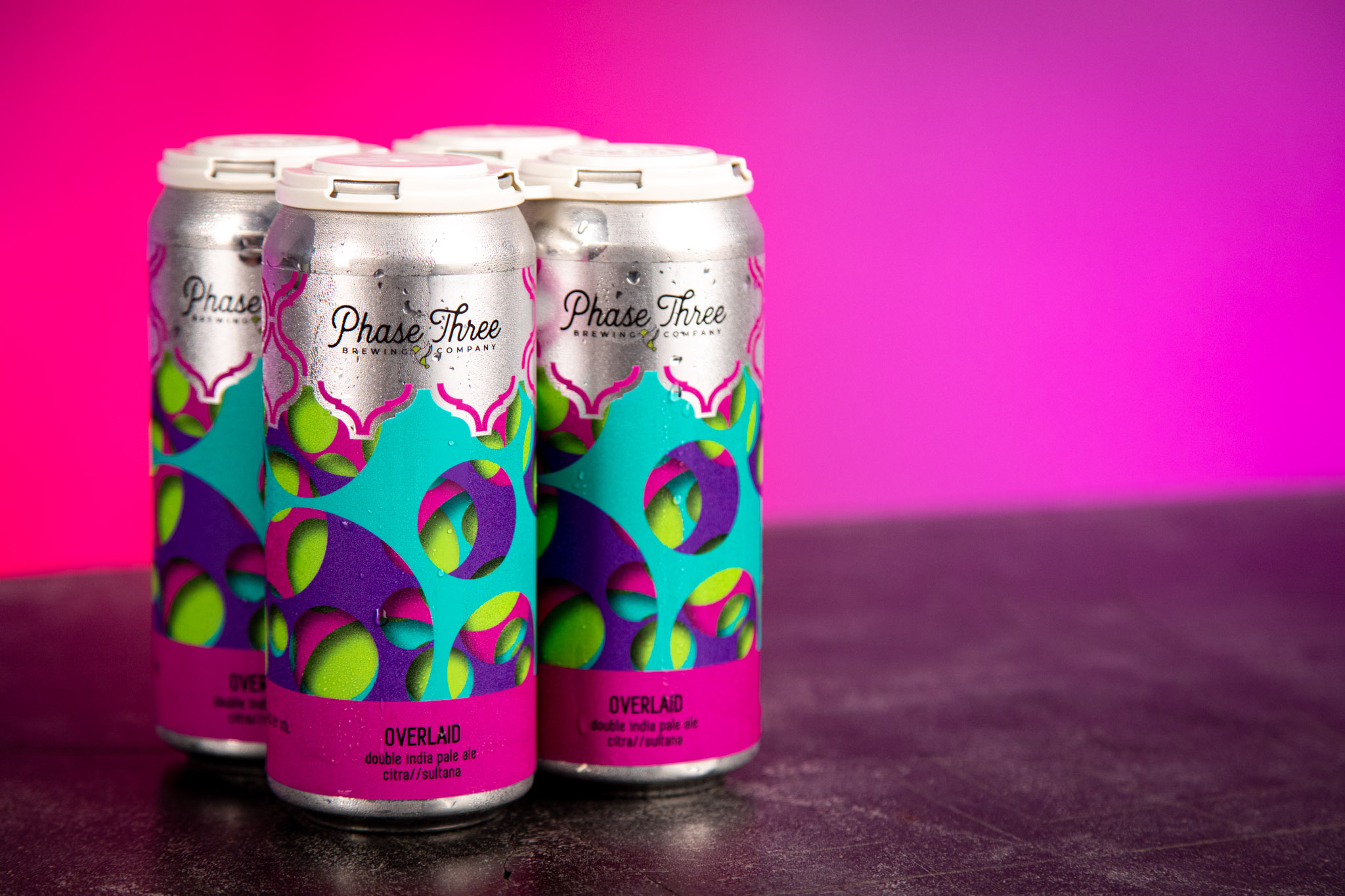 Phase Three Overlaid DIPA 4pk 16oz – Featuring citra and sultana hops with pineapple, pine, and bright citrus notes. 7.8% ABV