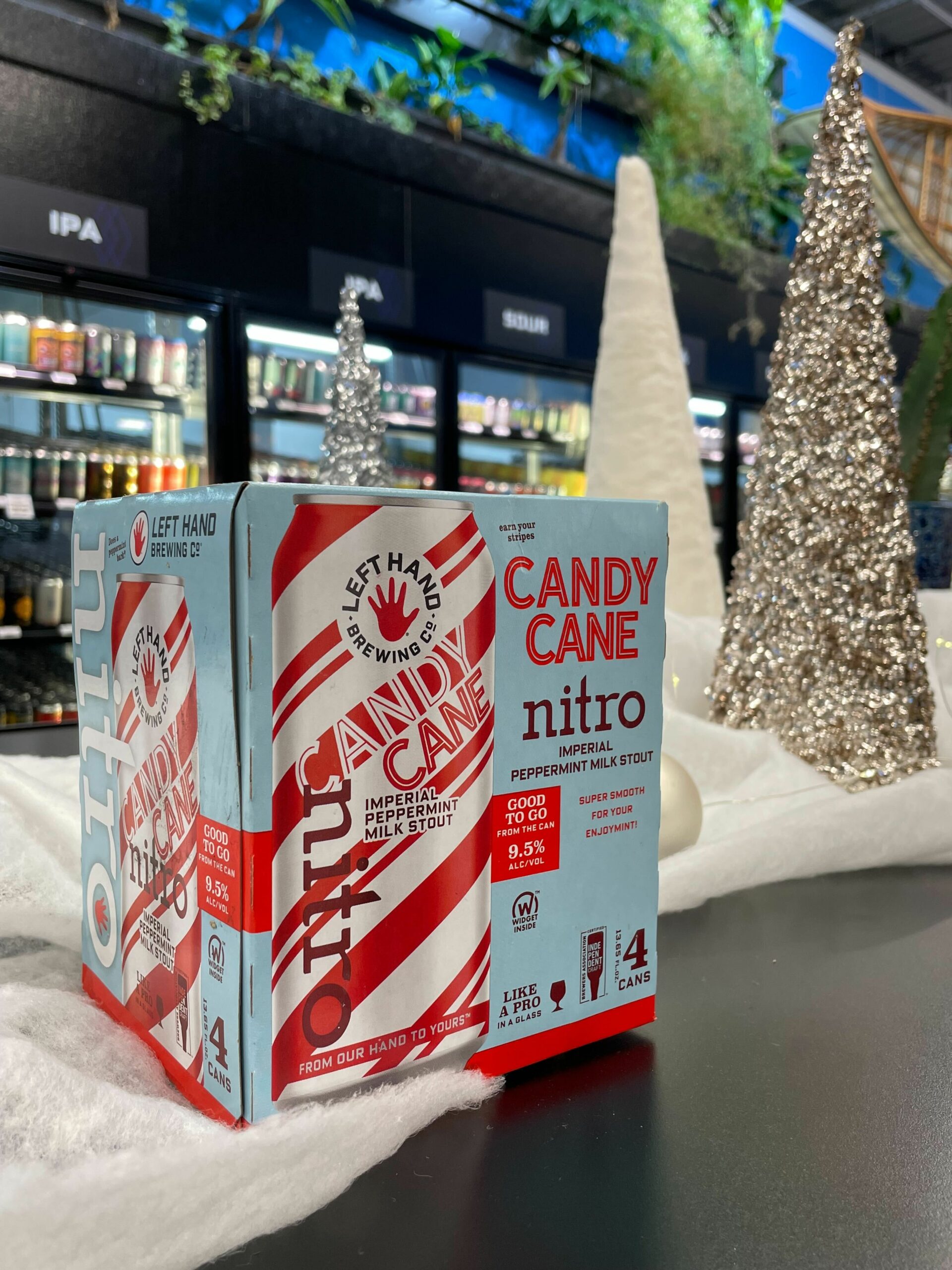 Left Hand Nitro Candy Cane Imperial Stout 4pk – Take a walk down Candy Cane Lane and experience the aromas of rich chocolate, fresh peppermint, and a hint of coffee. This smooth, full-bodied Imperial Peppermint Milk Stout is reminiscent of peppermint bark and will keep you warm and cozy on a cold winter’s night. So snuggle up to the fire, and enjoy the mo-mint. 9.5% ABV