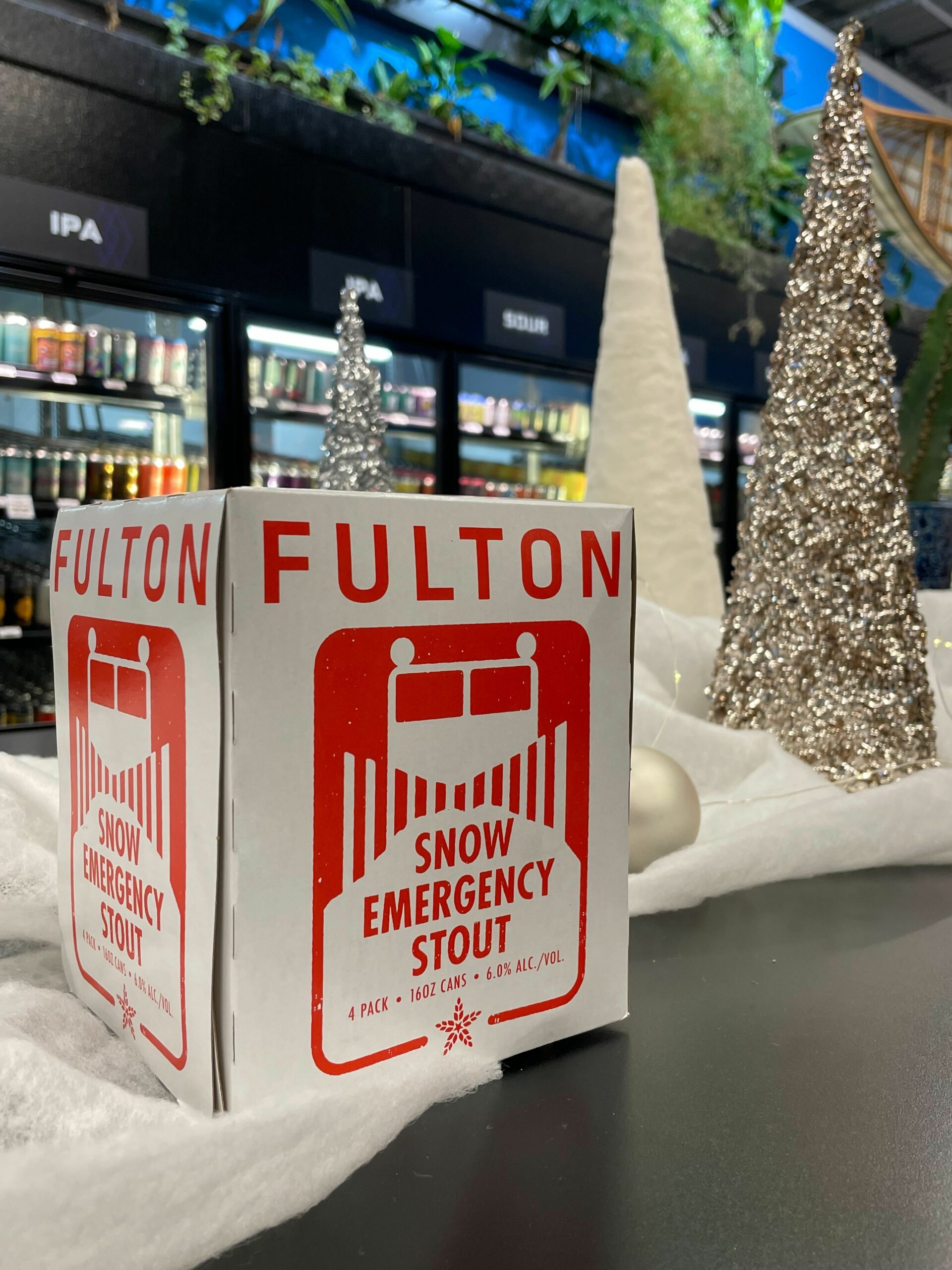 Fulton Snow Emergency Stout 4pk 16oz – This full-bodied stout was brewed with ingredients from Proximity Malt in Southern Colorado. Barley malts, including chocolate, black, and dark caramel malts, mixed with chocolate wheat, and malted oats to deliver a smooth mouthfeel with enough complexity to sip and savor. Layers of dark chocolate on the nose and tongue combine with the healthy addition of Bravo hops to complement the residual sweetness from the specialty malts. 6% ABV