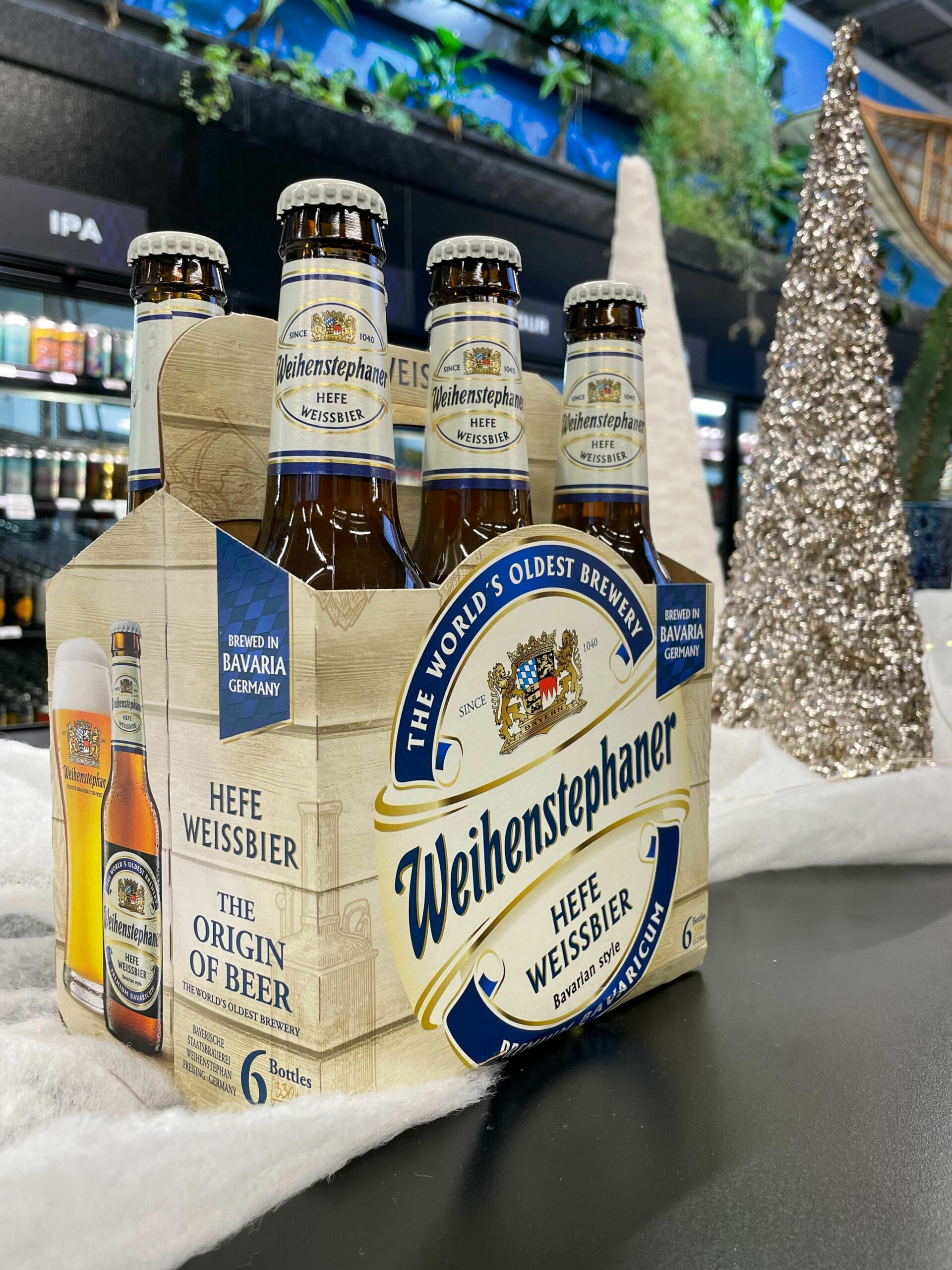 Weihenstephaner Hefe Weissbier 6pk 11.2oz Btls – A fruity nuances of banana and cloves intermingle with malt flavors to create a balanced beer with a light, creamy character. This premium, naturally cloudy, pale amber wheat beer is truly a feast for the senses. It is the ideal reward at the end of a long day. 5.4% ABV
