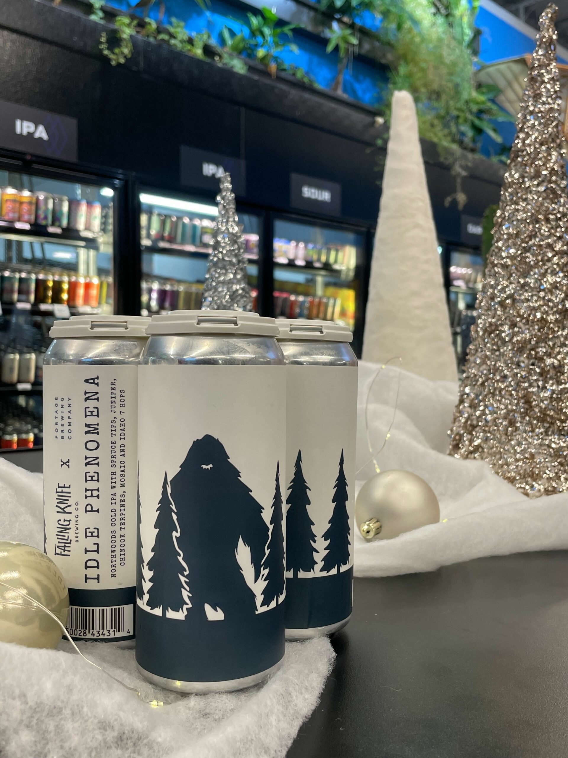 Falling Knife Brewing + Portage Brewing Idle Phenomena 4pk 16oz – We’re calling it a Northwoods Cold IPA because it prominently features Spruce Tips and Juniper layered on top of Mosaic and Idaho 7 hops with some Chinook Terpines to put a bow on it. It’s beautifully complex with piney, floral, and juicy hop characteristics over a resilient body and light bitterness! 7% ABV