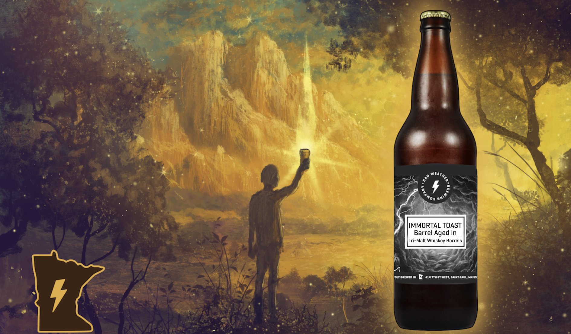 Bad Weather Brewing Company Barrel Aged Immortal Toast – Sold only in bottles at the brewery, this is a limited batch of Immortal Toast white stout with coffee, chocolate, and vanilla, aged in a Tri Malt Whiskey barrel from J. Carver.