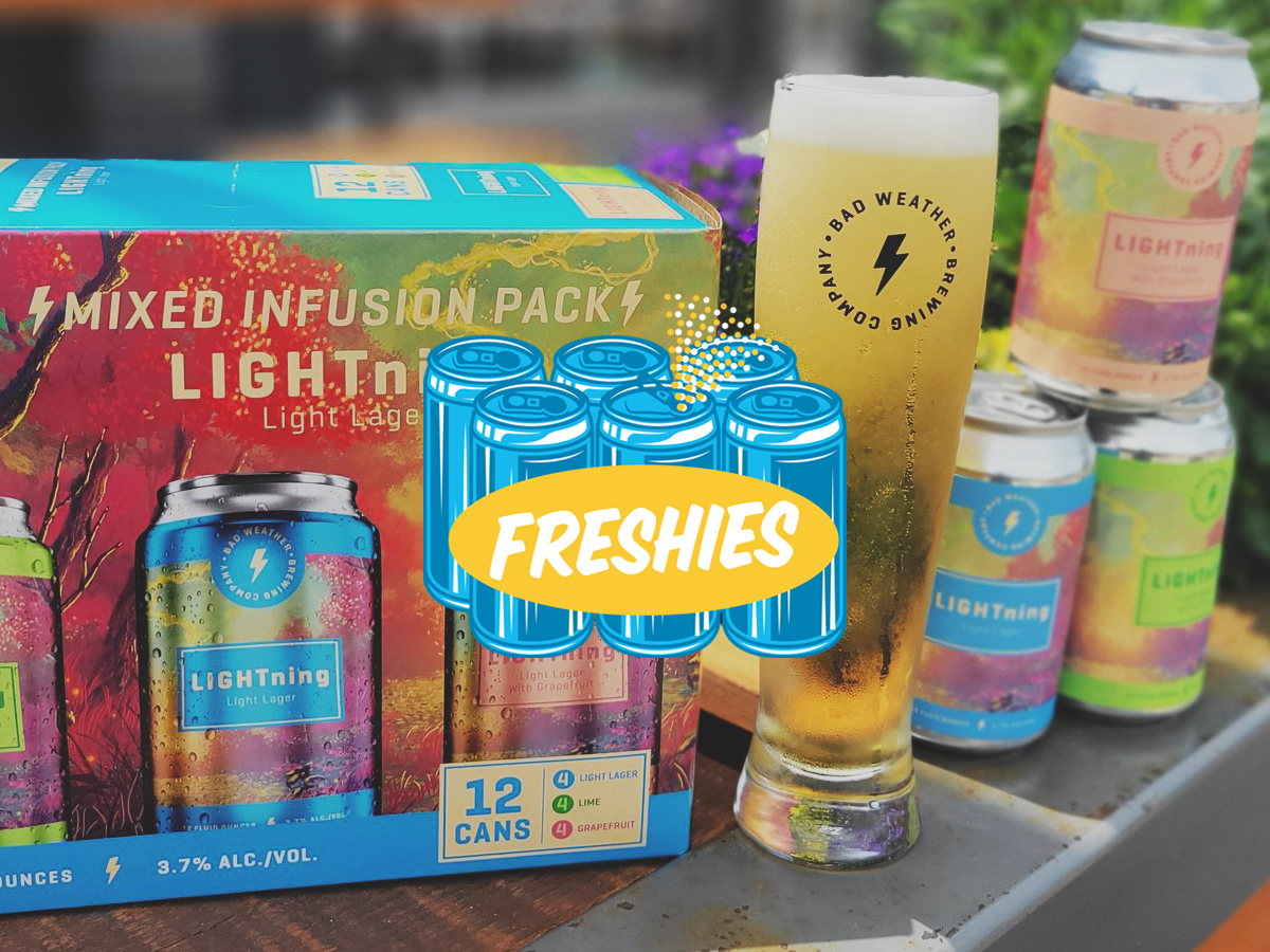Bad Weather LIGHTning Low-Cal Lager • Photo via Bad Weather Brewing Company