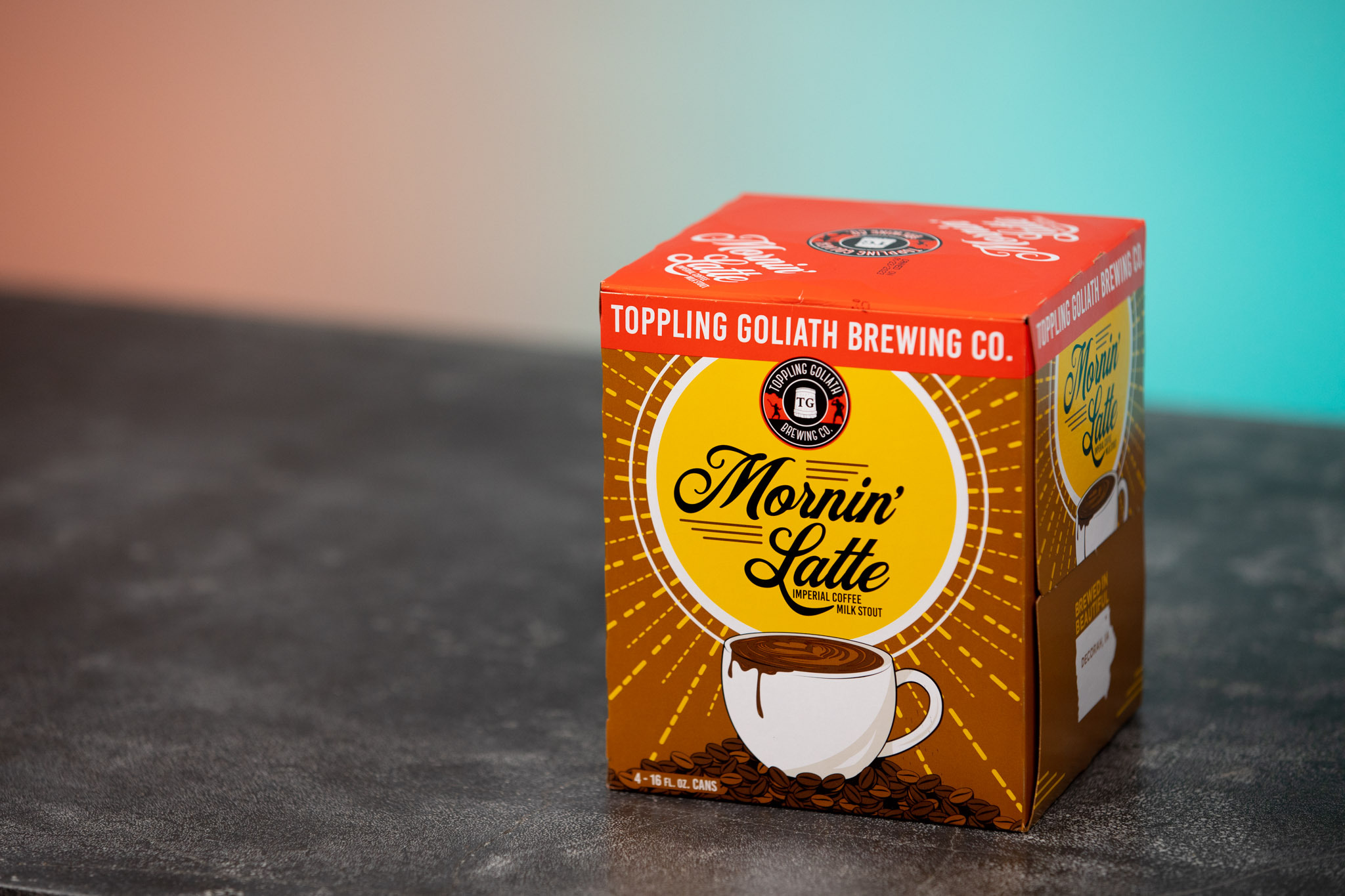 Toppling Goliath Brewing Co. Mornin’ Latte Imperial Coffee Milk Stout – Imperial Coffee Milk Stout brewed with lactose and a careful blend of cacao nibs. Dark chocolate, toasty, sweet coffee taste. 8.9% ABV