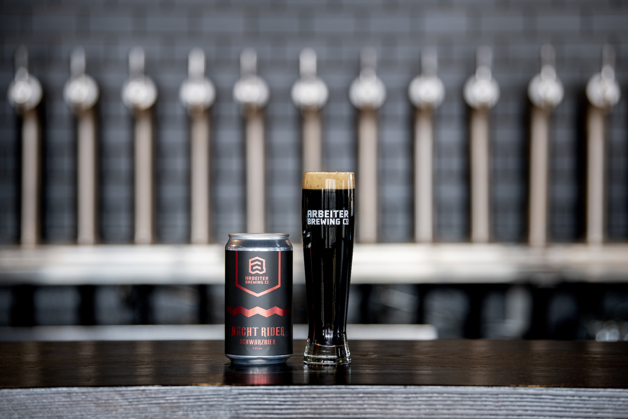- Nacht Rider – A dark in color, light in body schwarzbier with notes of toffee, dark bread, light roast coffee and a touch of chocolate on the nose. 4.9% ABV, 21 IBU.