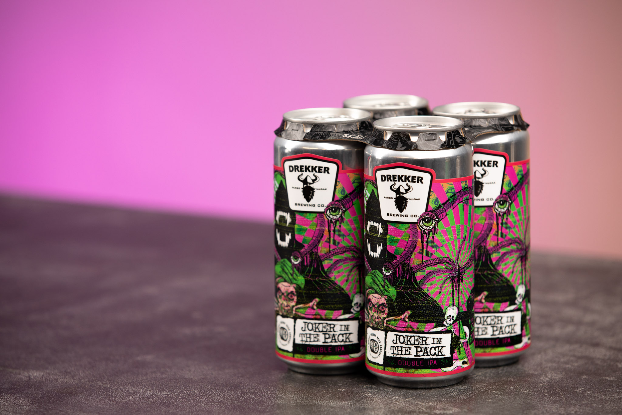 Drekker Brewing Company Joker In The Pack Double IPA – A double IPA packed with Nectaron, Citra, Nelson Sauvin, and Strata hops. We’re pretty dang pumped about how Joker in the Pack turned out. 8.2% ABV![]()