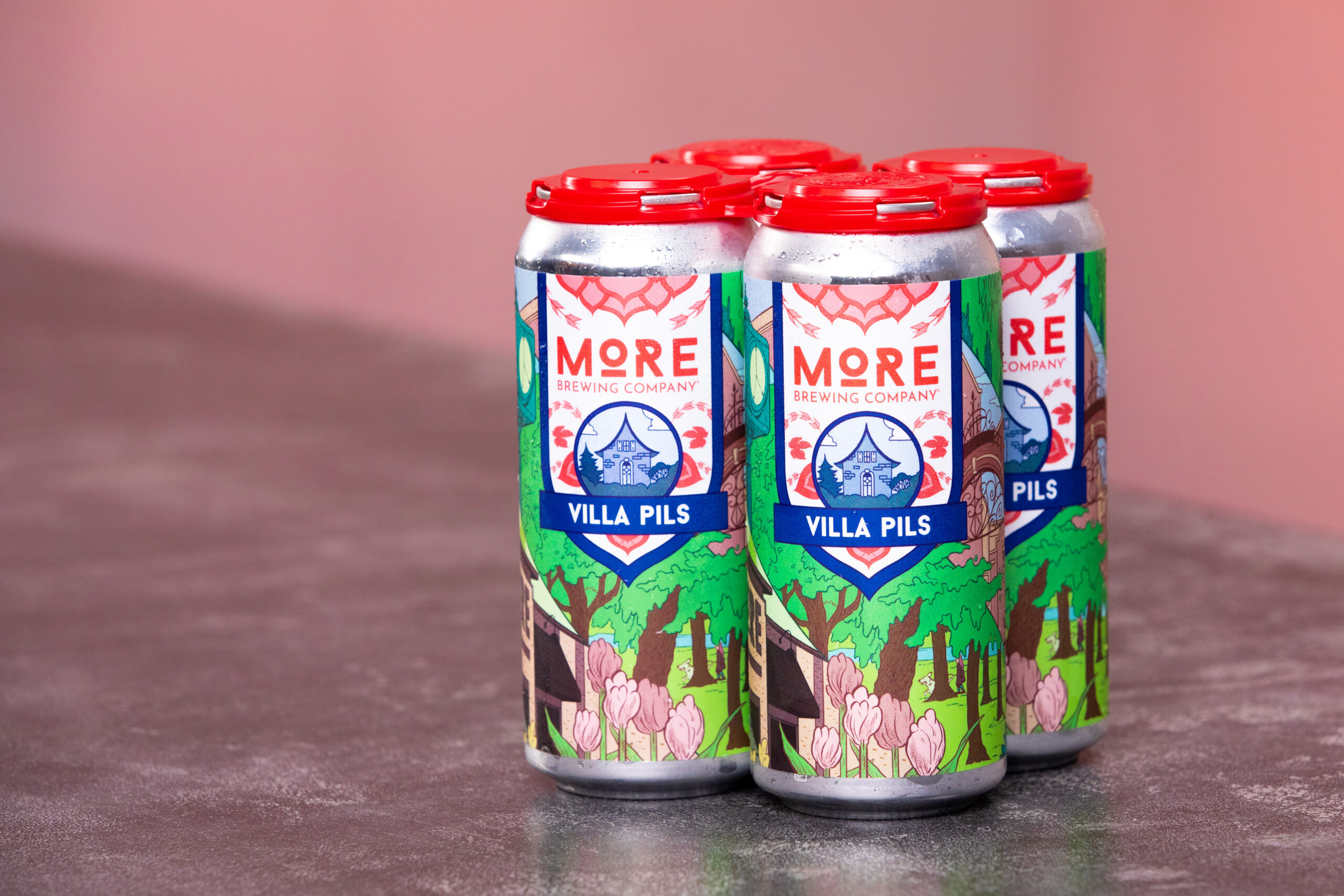 MORE Brewing Co. Villa Pils German Style Pilsner – A traditional Pilsner with 100% German-bred malts and hopped with Hallertau and Saaz hops. An homage to the birthplace of More, this pilsner is ultra crispy and refreshing. This beer was lagered in a traditional horizontal lagering tank for about six weeks to ferment and develop its delicious, light flavor profile slowly. It’s bready and buttery smooth with a healthy amount of carbonation packed in every sip. 4.8% ABV ![]()