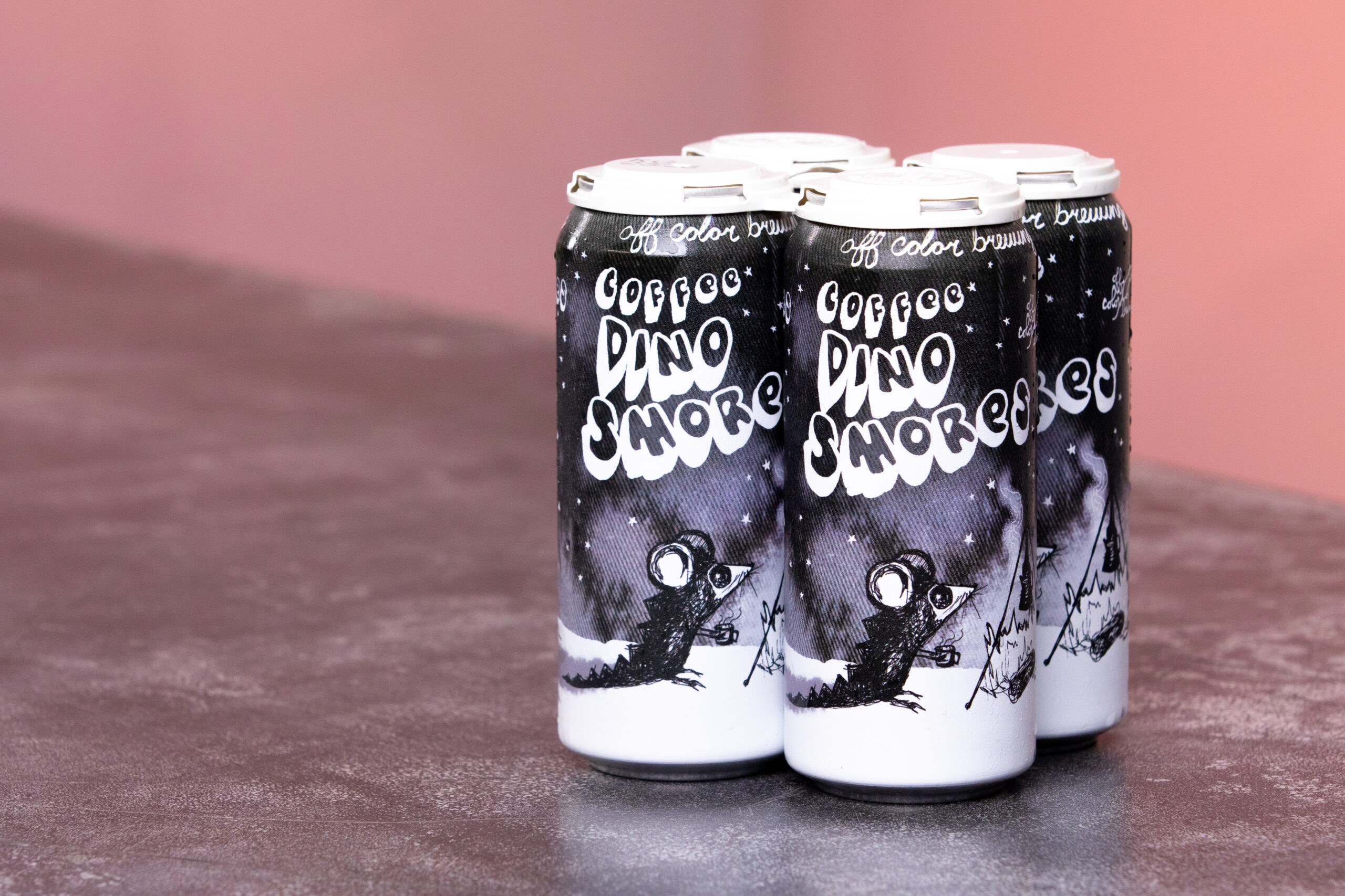 Off Color Brewing Coffee Dino Smores Imperial Stout – Stout brewed with cocoa nibs, coffee, marshmallow, vanilla bean, and graham flour. 10.5% ABV ![]()
