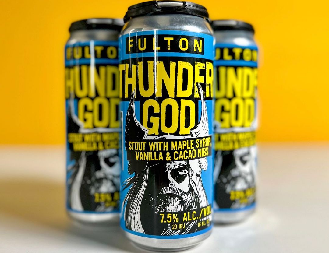 Fulton Brewing Thunder God – A limited-time stout with added maple syrup, vanilla, and cacao, sold in 4-packs. 7.5% ABV.