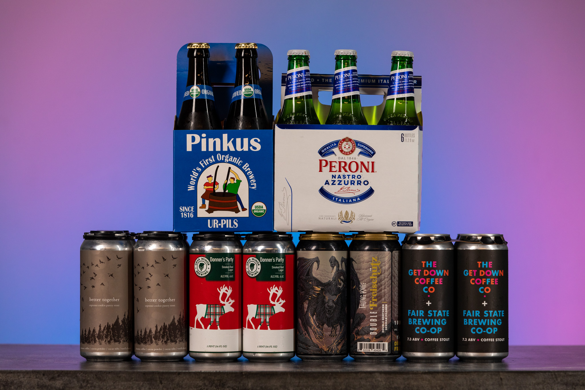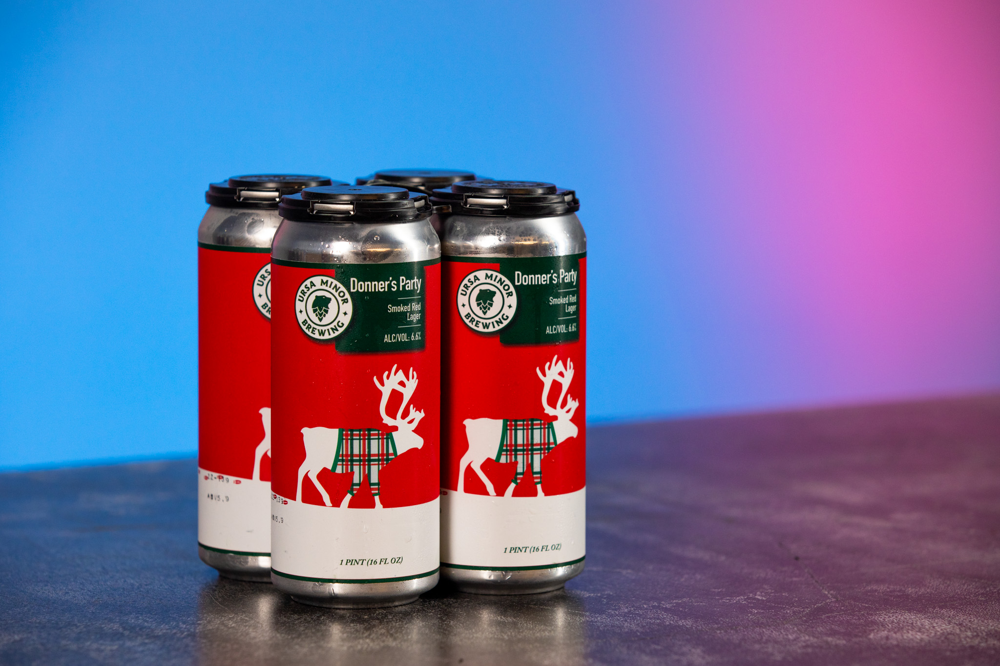 Ursa Minor Donner’s Party – This smoked red lager clocks in at 6.6% ABV, 30 IBU. On tap at Ursa Minor now and available in a jolly-looking 4-pack at Dabbler Depot while supplies last.