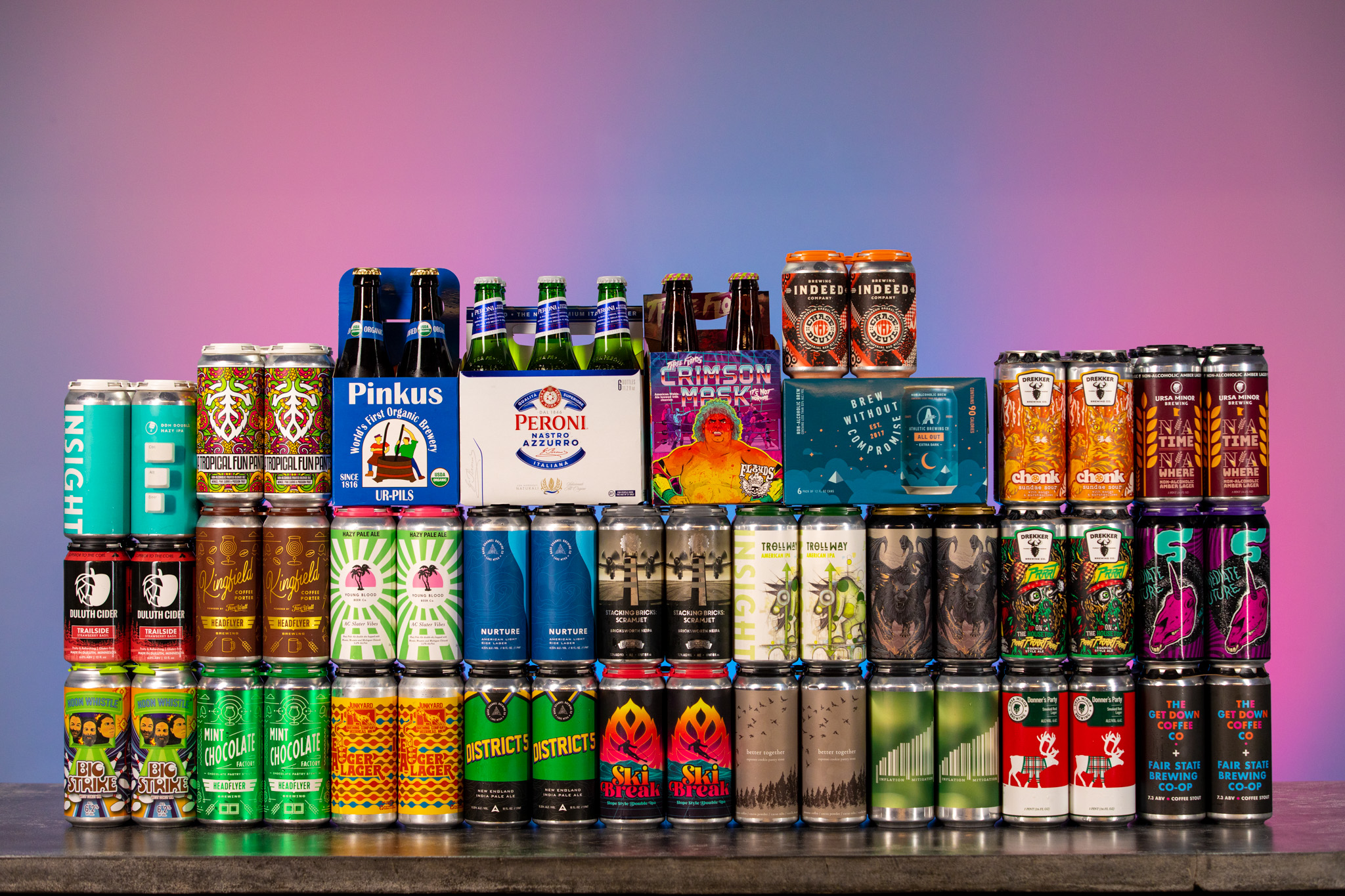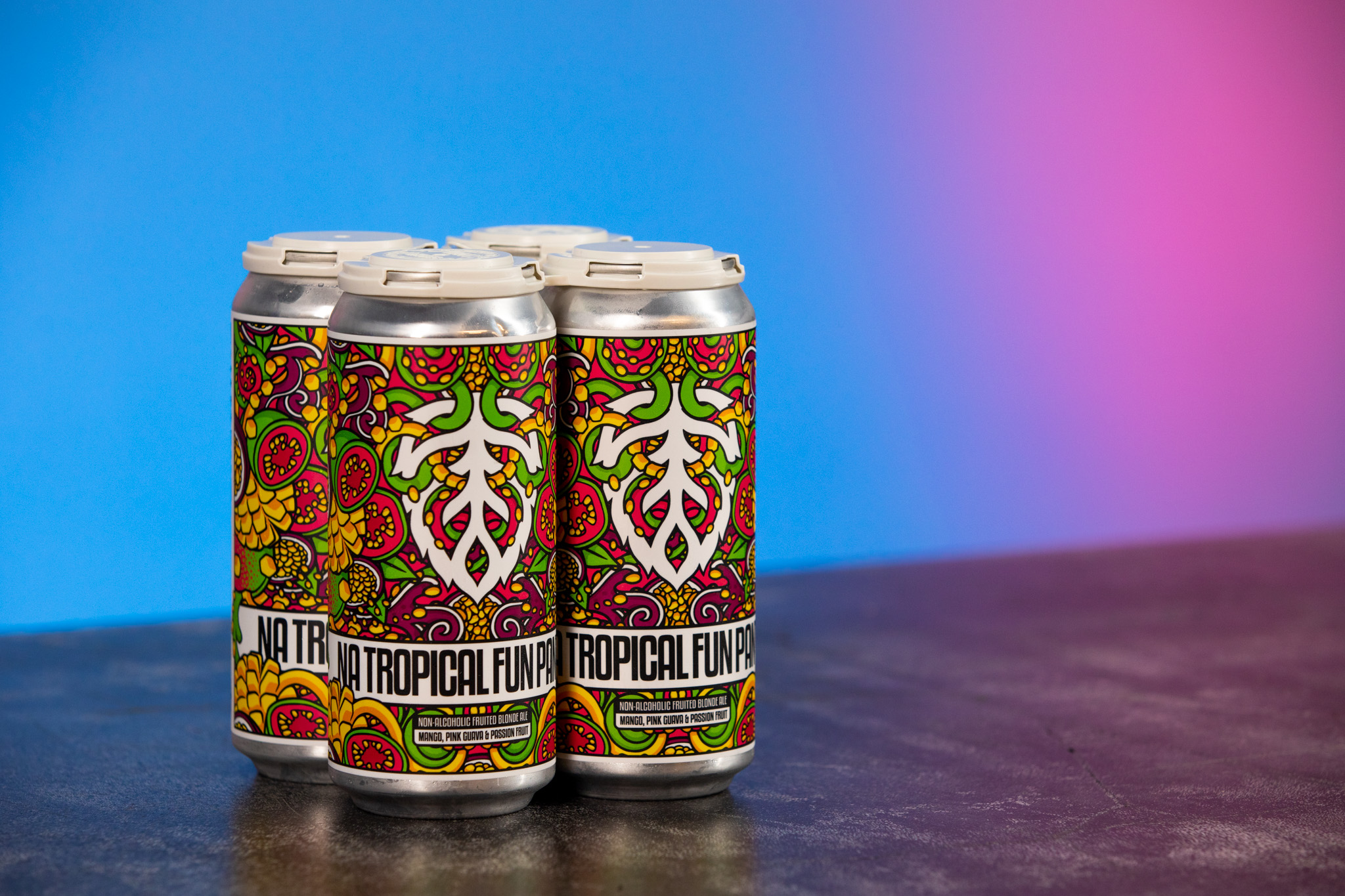 Lupulin Brewing Company NA Tropical Fun Pants – This non-alcoholic fruited blonde ale boasts mango, pink guava, and passion fruit flavors.
