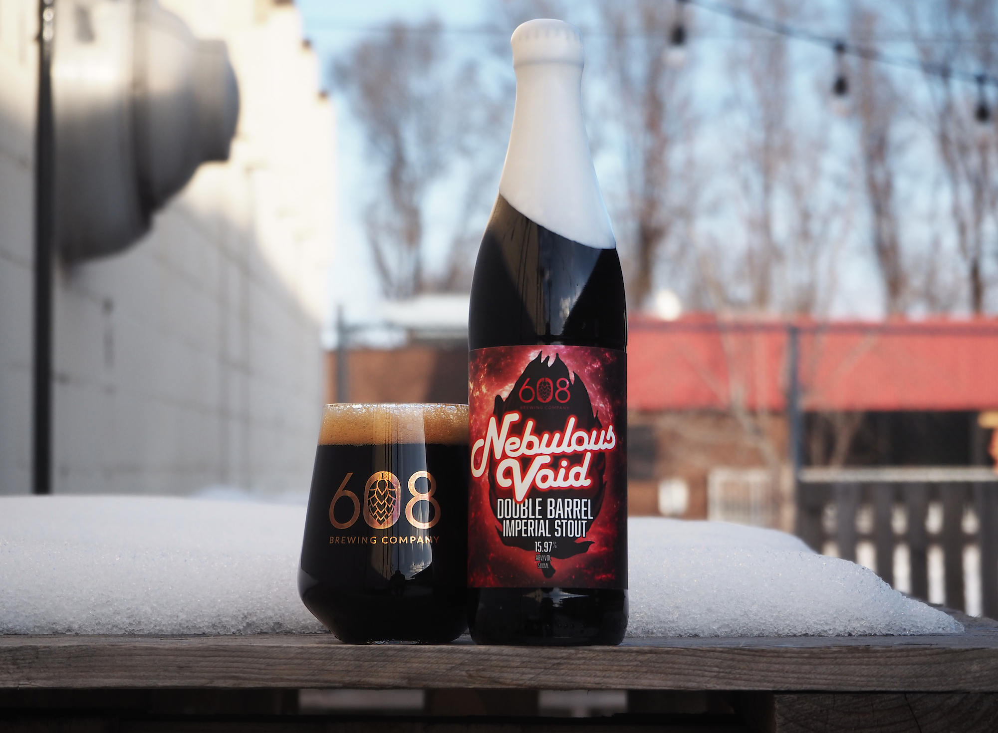 • Nebulous Void – Available at 11am on Saturday, this 15.97% ABV double barrel imperial stout spent time in Buffalo Trace and Booker’s bourbon barrels. “Strong, oaky, barrel-forward aromas give way to a rich, luxurious and smooth stout, with flavors of dark chocolate, caramel and whiskey-soaked vanilla wafers,” 608 says. Sold in 500-milliliter bottles.
