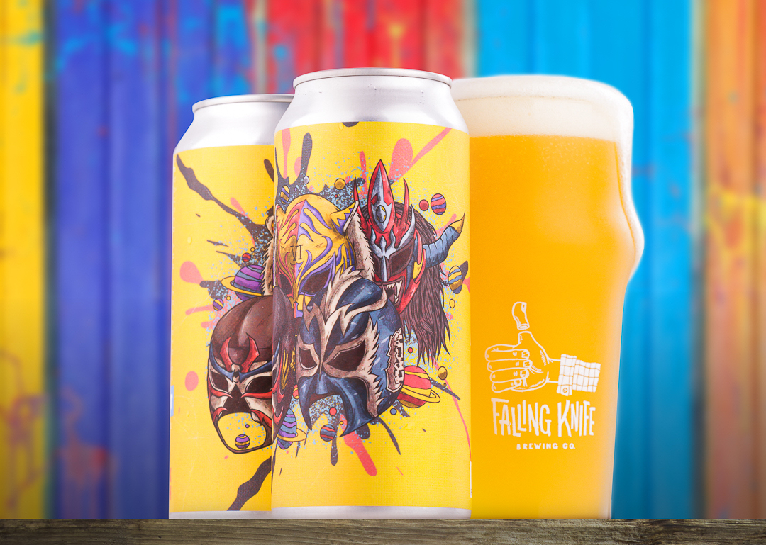 Falling Knife Brewing Co. Academy of Doom – A 5.7 % ABV hazy pale ale with bright, juicy, and dank hop flavors from a cocktail of Vic Secret, Australian Topaz and Galaxy.