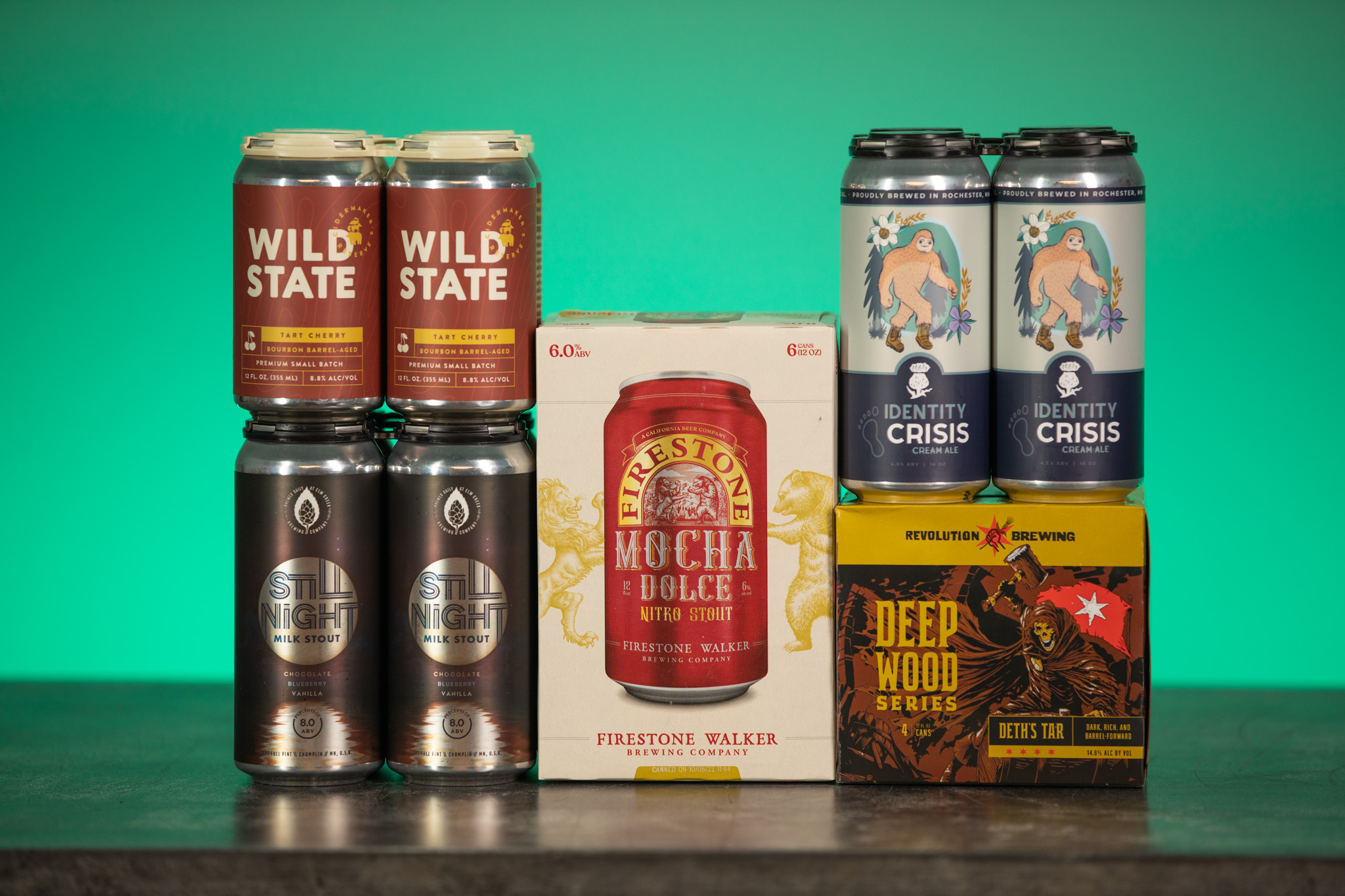 - Bourbon County Stout – Aged and blended from bourbon barrels from Heaven Hill, Four Roses, Wild Turkey, and Buffalo Trace. The brewery says to expect notes of vanilla, dark chocolate, toffee, molasses, almond, and dried fruit in this 14.4%-ABV imperial stout.