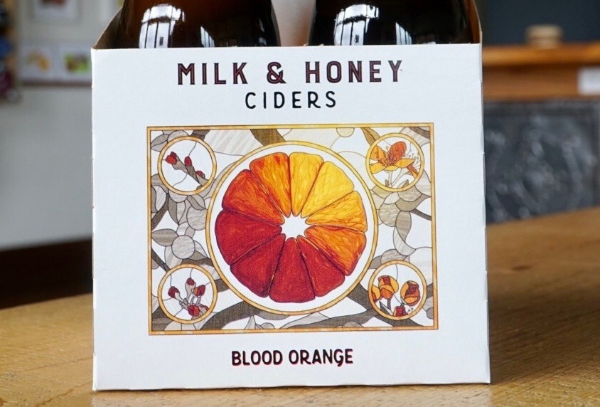 - Blood Orange – A cider made with 1,000 pounds of blood orange (zested, sliced, and juiced. “The ruby citrus imparts its hue and distinct flavor into each glass, creating a fruit-forward cider,” Milk & Honey explains.