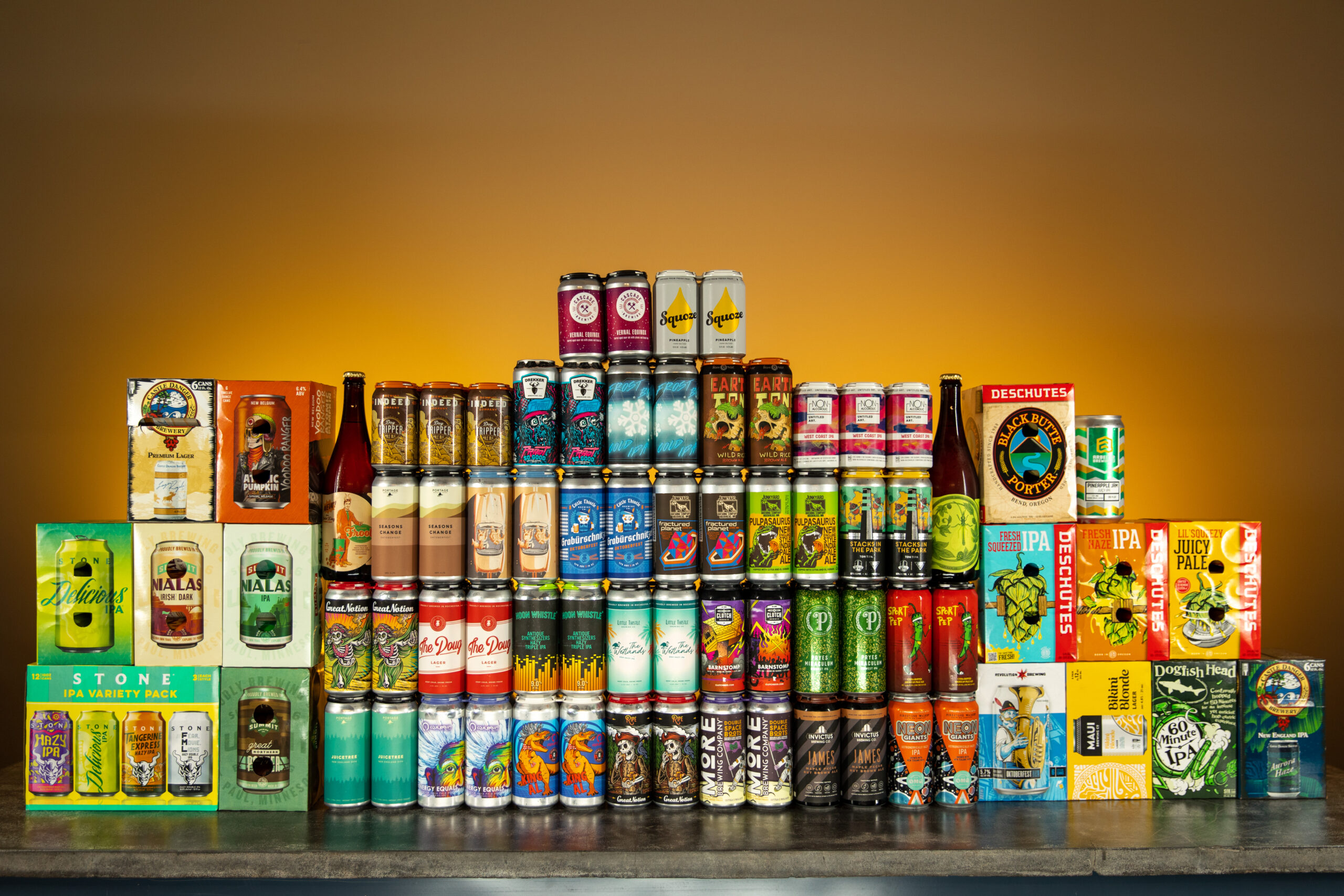 - Squelch – “Cosmic Punch yeast paired with wine-grape derived mash hops go head-to-head with Bru-1 and Strata hops,” the brewery says of this juicy, hazy, and tropically-toned IPA.