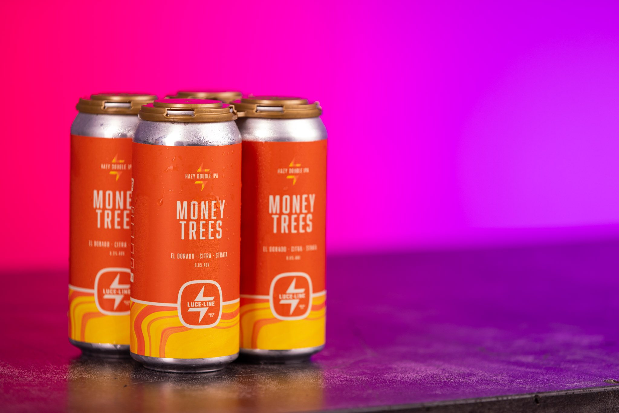 Luce Line Money Trees Hazy DIPA 4pk 16oz – Money Trees is a hazy Double IPA brewed with El Dorado, El Dorado Cryo, Citra, and Strata hops which creates a sticky juice bomb with notes of candied melon, strawberry, peach, and mango. 8% ABV