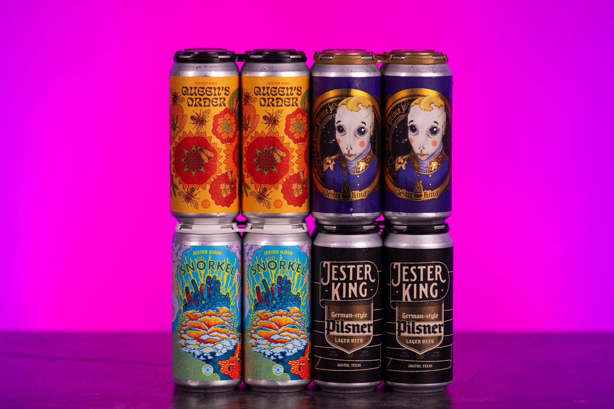 Jester King Queens Order Farmhouse Ale 4pk 16oz – Queen’s Order is designed to be a nice, pillowy, low abv, dry, and drinkable farmhouse ale with pleasant fruit-forward aromas and a nice quenching hop bitterness and fermentation tartness. It’s brewed with Trinity well water, TexMalt Llano Pilsner, malted spelt, flaked oats, organic Perle hops, dried lemon peel, and Tallow honey. 4% ABV