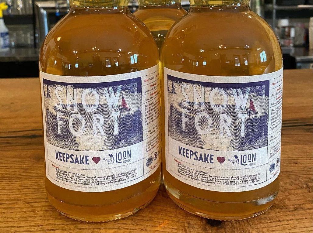 Keepsake Cidery Snow Fort – “This is a fortified cider blend with apple brandy, then aged in a barrel for a full, smooth, sweet and complex sipper. Limited quantities only available at the cidery,” Keepsake notes — on tap and in 750-milliliter bottles.
