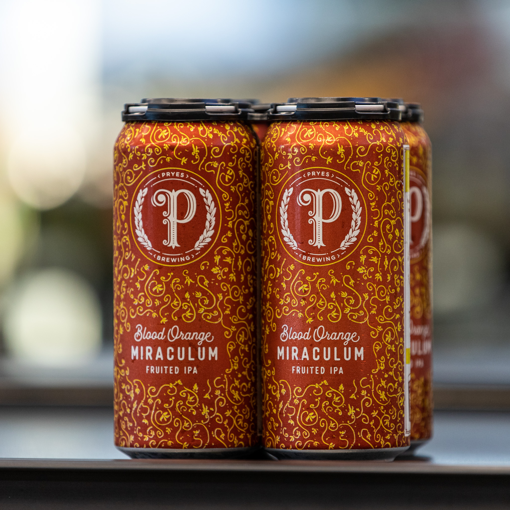 - Blood Orange Miraculum – Pryes’ core IPA with blood orange. Available in cans now and hitting brewery taplines next weekend at Pryes’ Boardwalk-themed patio party.
