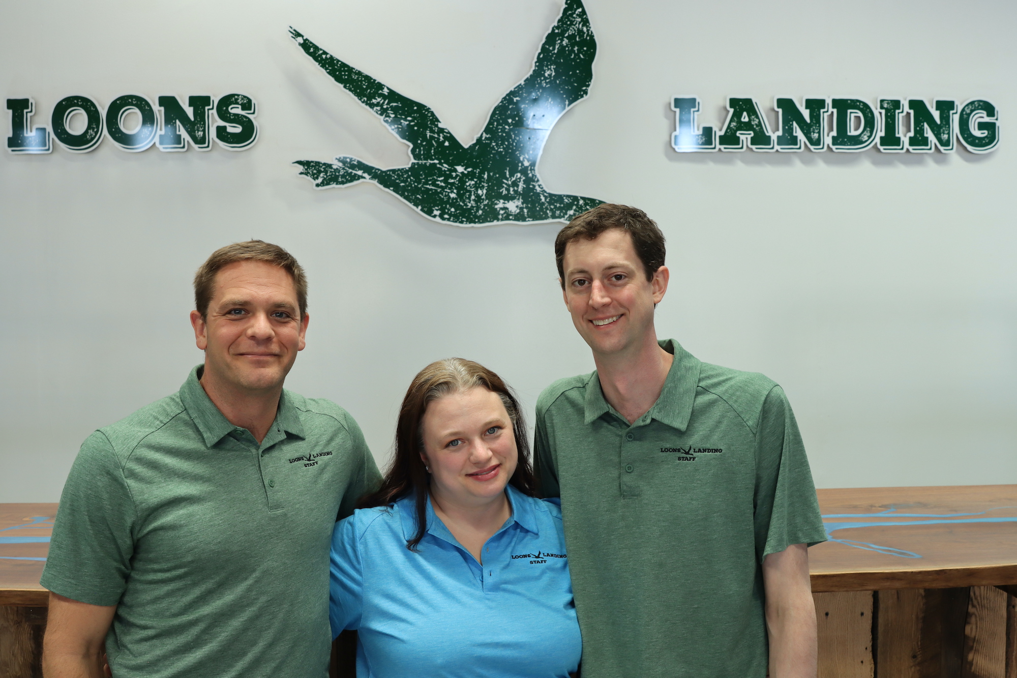 Loons Landing’s owners. From L-R, Paul Ough, Amy Johnson, Scott Johnson • Photo by Honeycomb Credit via Loons Landing Brewing Company