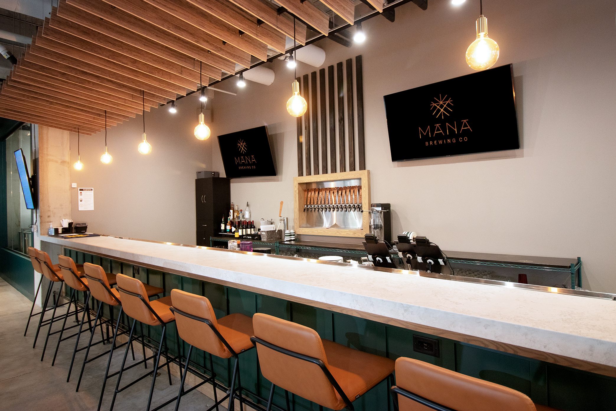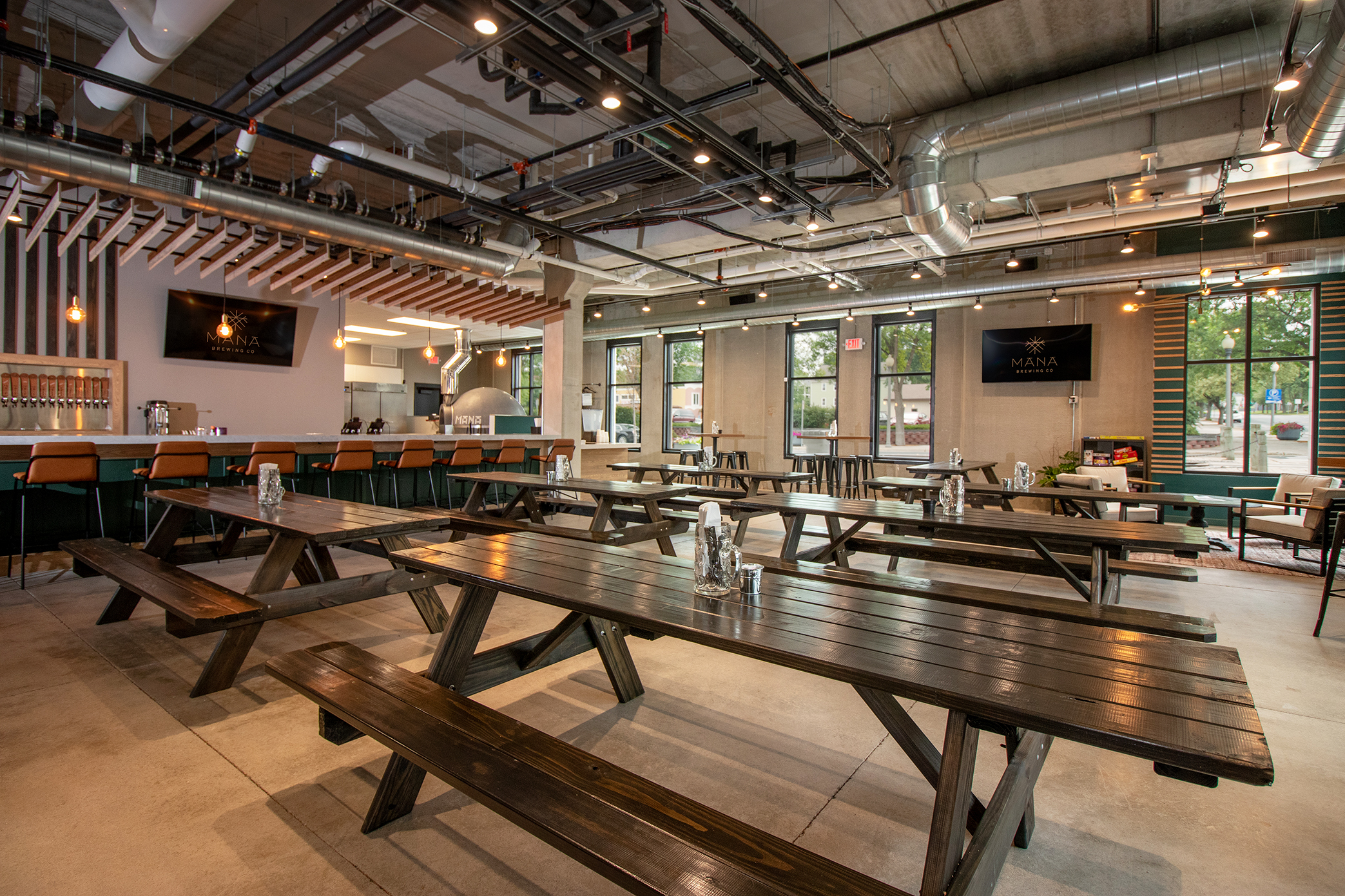 The owners decided to pursue opening a brewpub instead of a production brewery, in order to meet the legal requirements to serve food and have a full bar with cocktails. Mana’s menu features stone fired pizza and shareables like pretzels and chips and salsa.