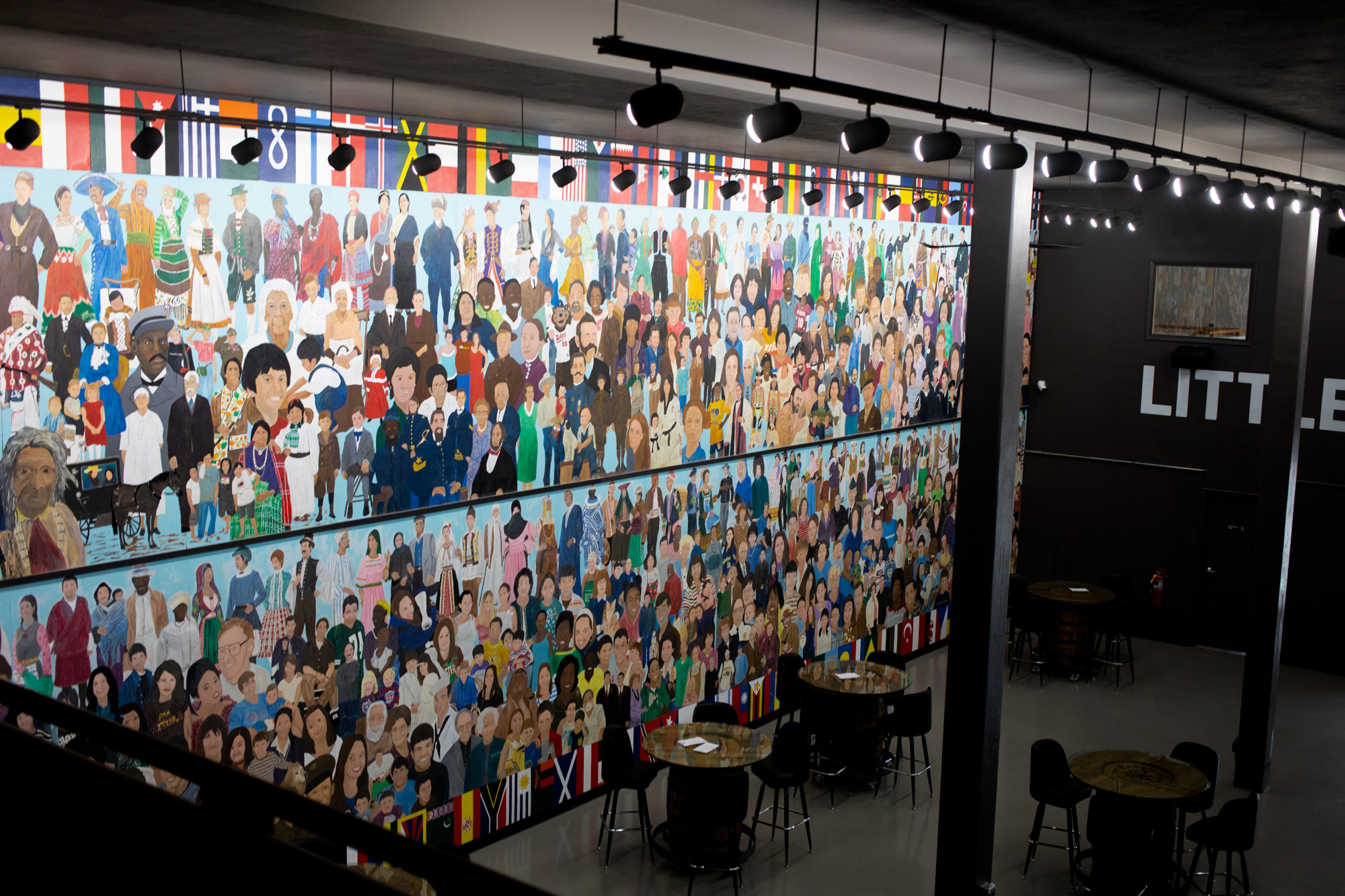 The other visual draw in the distillery is a stunning 104-foot mural that depicts about 700 people representing the almost 100 cultures that have settled in Minnesota. The painting was originally created by Wadena artist Chuck Richards, and first appeared on the backside of a nearby Super One grocery store building. The mural has now been cut into two 52-foot pieces lined up vertically, and Richards worked on restoring his vibrant painting last summer.