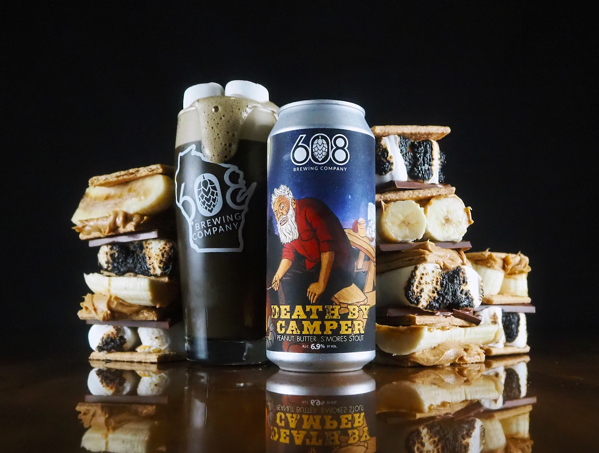 - Death By Camper – Available on tap and in 4-packs, this is a pastry stout with marshmallow, banana, chocolate, peanut butter, and graham cracker. 6.9% ABV.