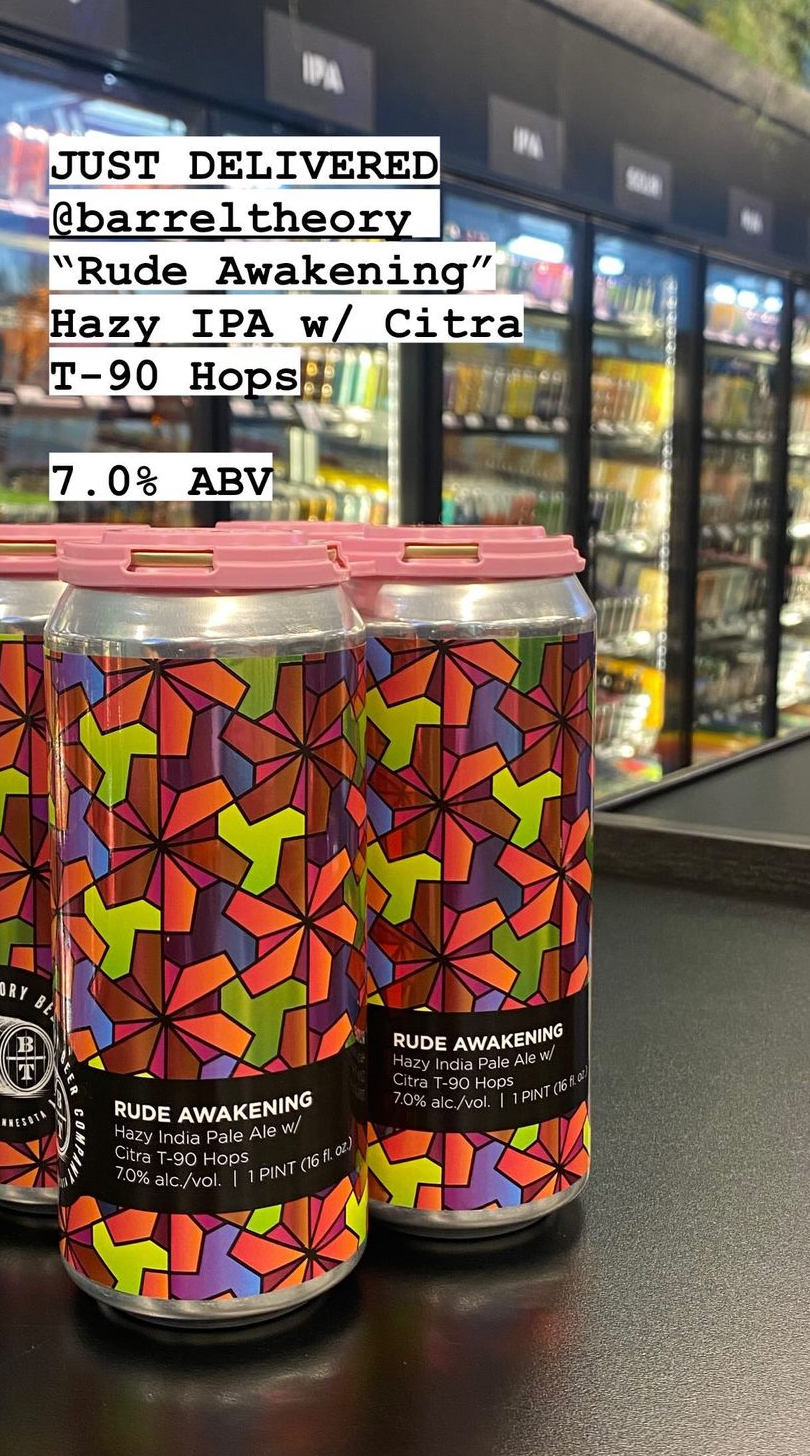 Barrel Theory Rude Awakening DDH Hazy IPA 4pk 16oz – Hazy India Pale Ale with Citra T-90 Hops. 7% ABV