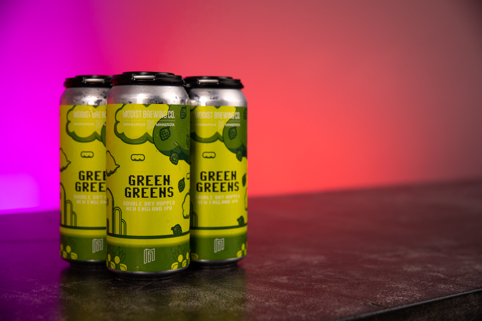 Modist Green Greens DDH NEIPA 4pk 16oz – New England IPA brewed with malted wheat, malted oats, flaked oats then hopped and double dry hopped with Sabro, Galaxy, and Simcoe Cryo. 7.3% ABV