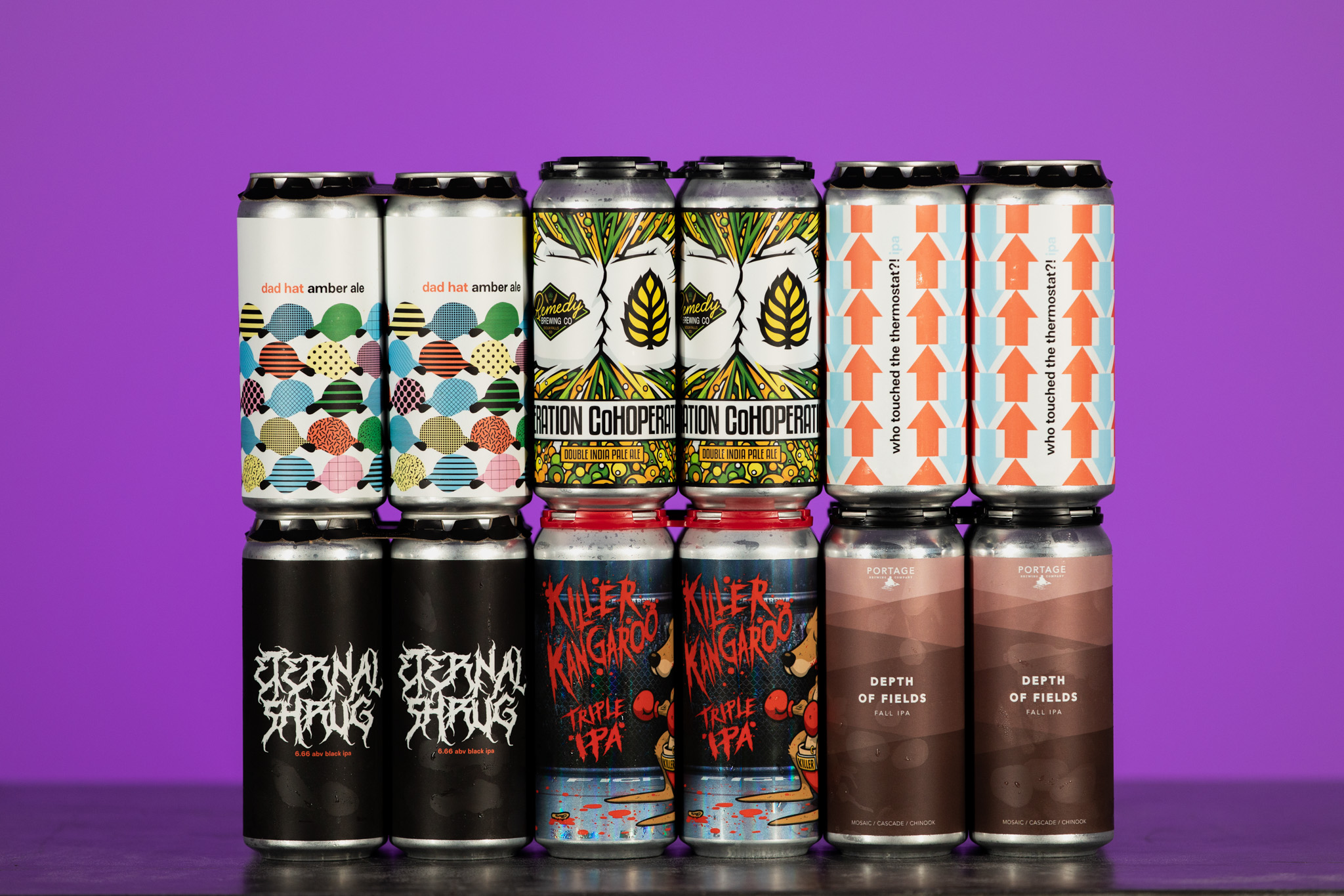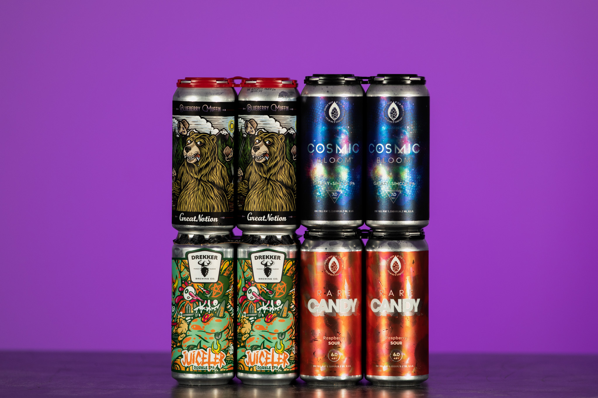 We've got a brand new mixed pack featuring three beloved IPAs from our current roster, Sweet Child of Vine, 300 IPA, and Moon Howler Hazy IPA, as well as a brand new Session IPA called Up and At 'Em.