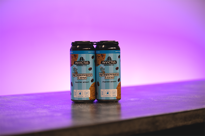 Invictus Brewing Co. Tyrannosaurus Press – Back from extinction in collaboration with T-Rex Cookie and Folly Coffee. This pastry stout was brewed with cookies and cold brew. 8.0% ABV.