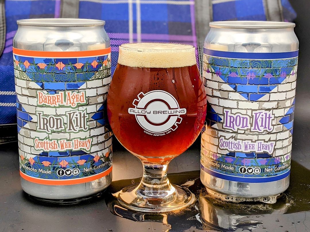 Alloy Scotch Barrel Aged Iron Kilt Wee Heavy – A malt-forward wee heavy barrel-aged for eight months in unpeated scotch barrels. 10.2% ABV, 31 IBU.