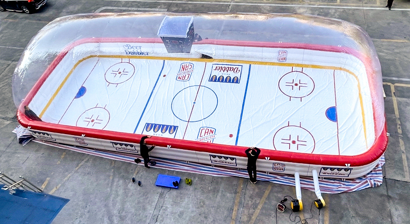 You and 3 other friends will face off against another team of four inside our massive bubble hockey inflatable for six minutes of slap shots and daring saves! Each player will be confined to a small area of the “rink”, just like a stationary bubble hockey “player” would be. Make sure you don’t get carried away and step outside your zone, because if you do, you’re going to be spending some time in the penalty box while the other team gets a power play!