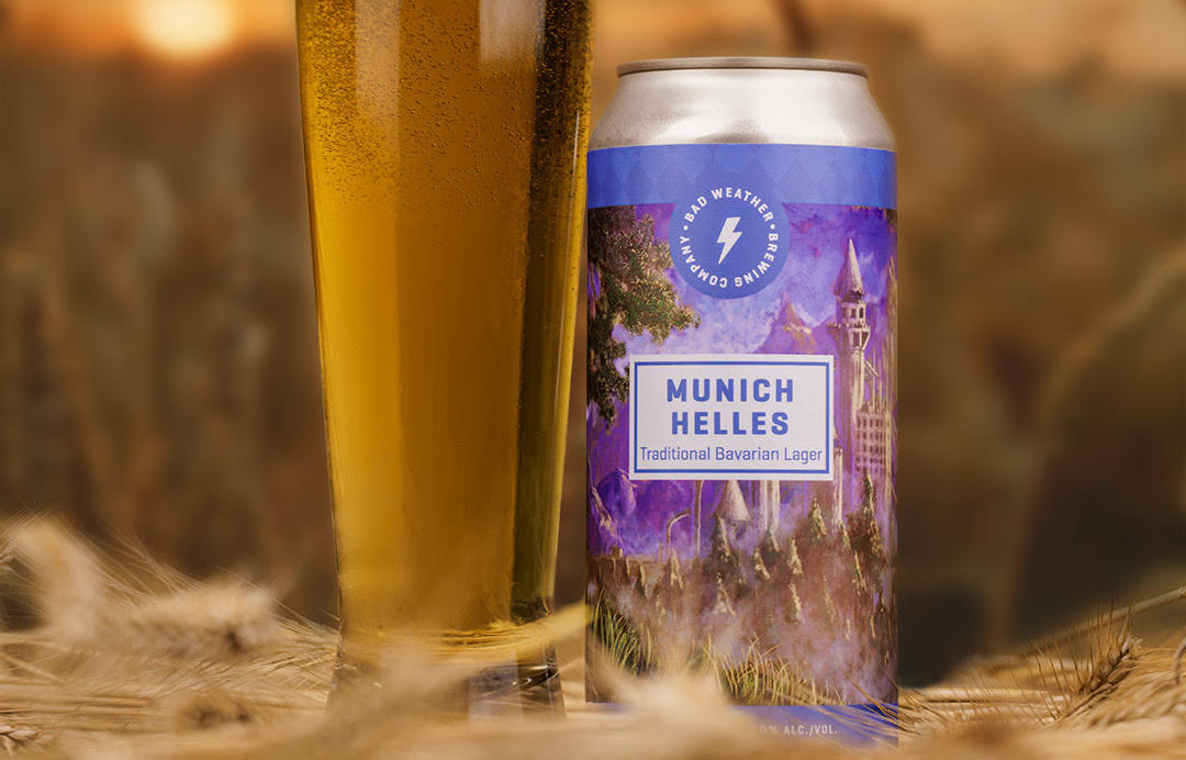 Bad Weather Munich Helles Lager – A clear, dry lager that is a pale straw in color with a creamy white head, the brewery notes. On tap and in cans too.