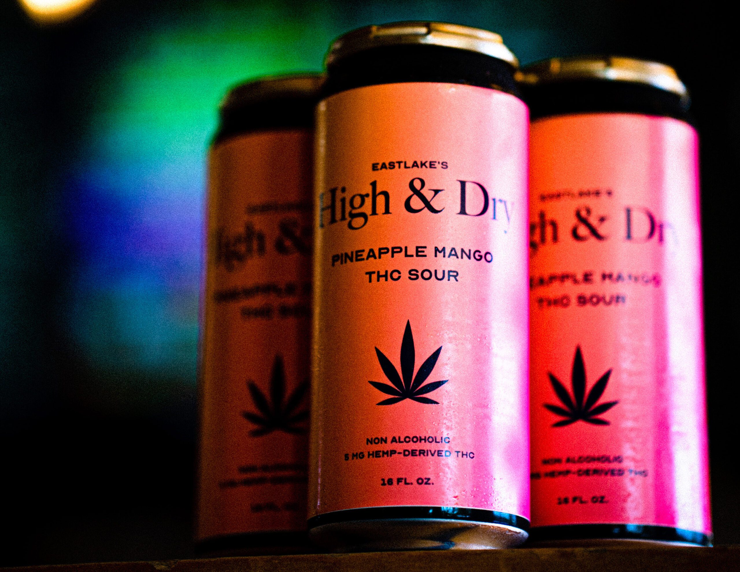 Eastlake Craft Brewery High & Dry – “A pineapple and mango flavored, non-alcoholic sour beer, infused with 5mg of THC derived from hemp,” Eastlake explains, sold in cans at the brewery, beginning on Thursday.