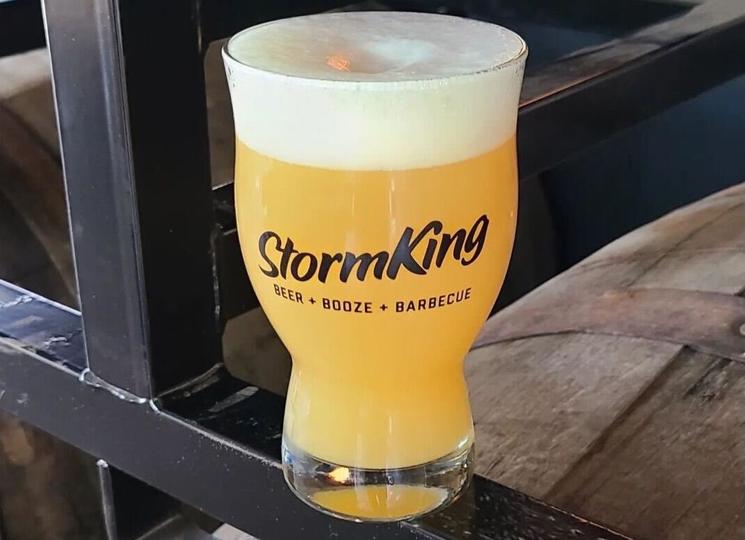StormKing Brewpub and Barbecue Max Haze – HBC 630, Belma, and Mosaic hops combine in this hazy IPA with pineapple, strawberry, cherry, and peach flavors.