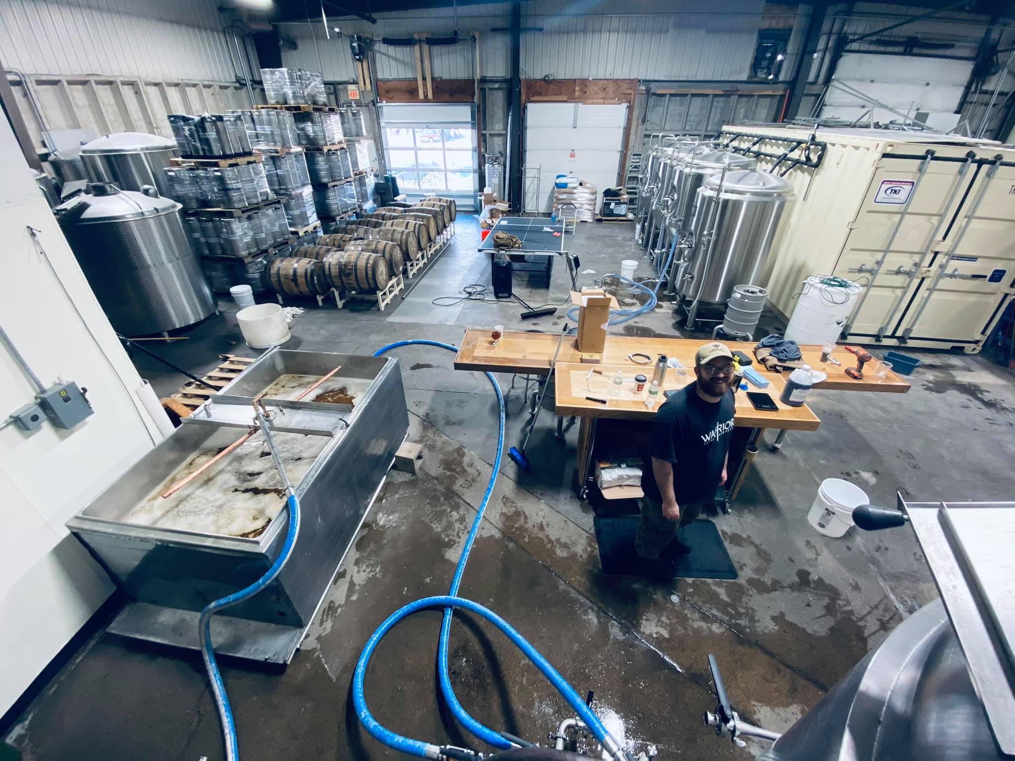 Benjamin Gipson standing in the production facility at Warrior Brewing Company in Duluth • Photo via Warrior Brewing Company