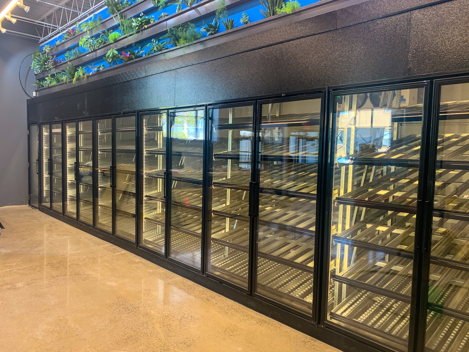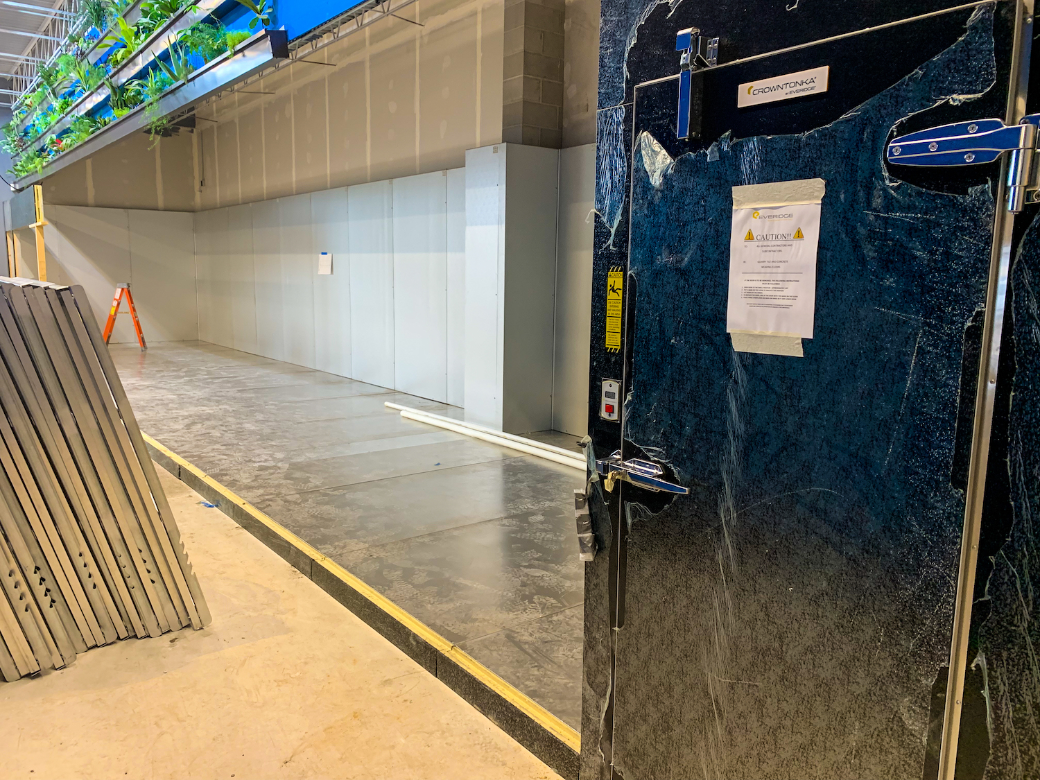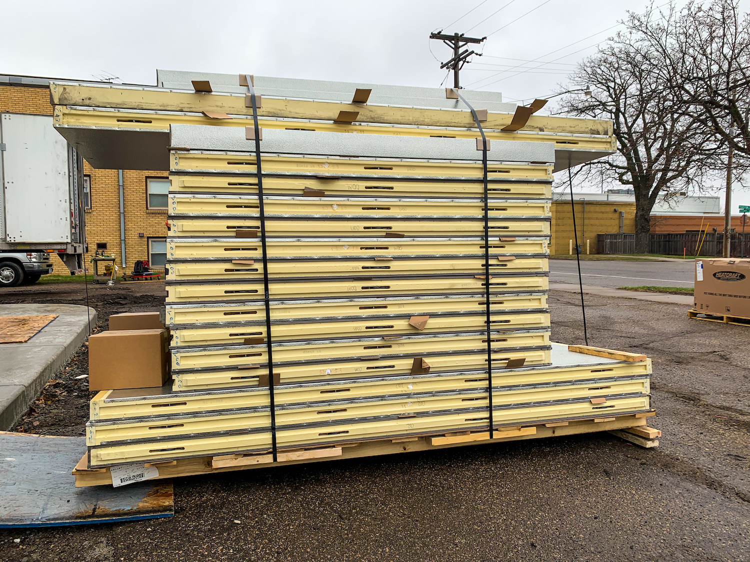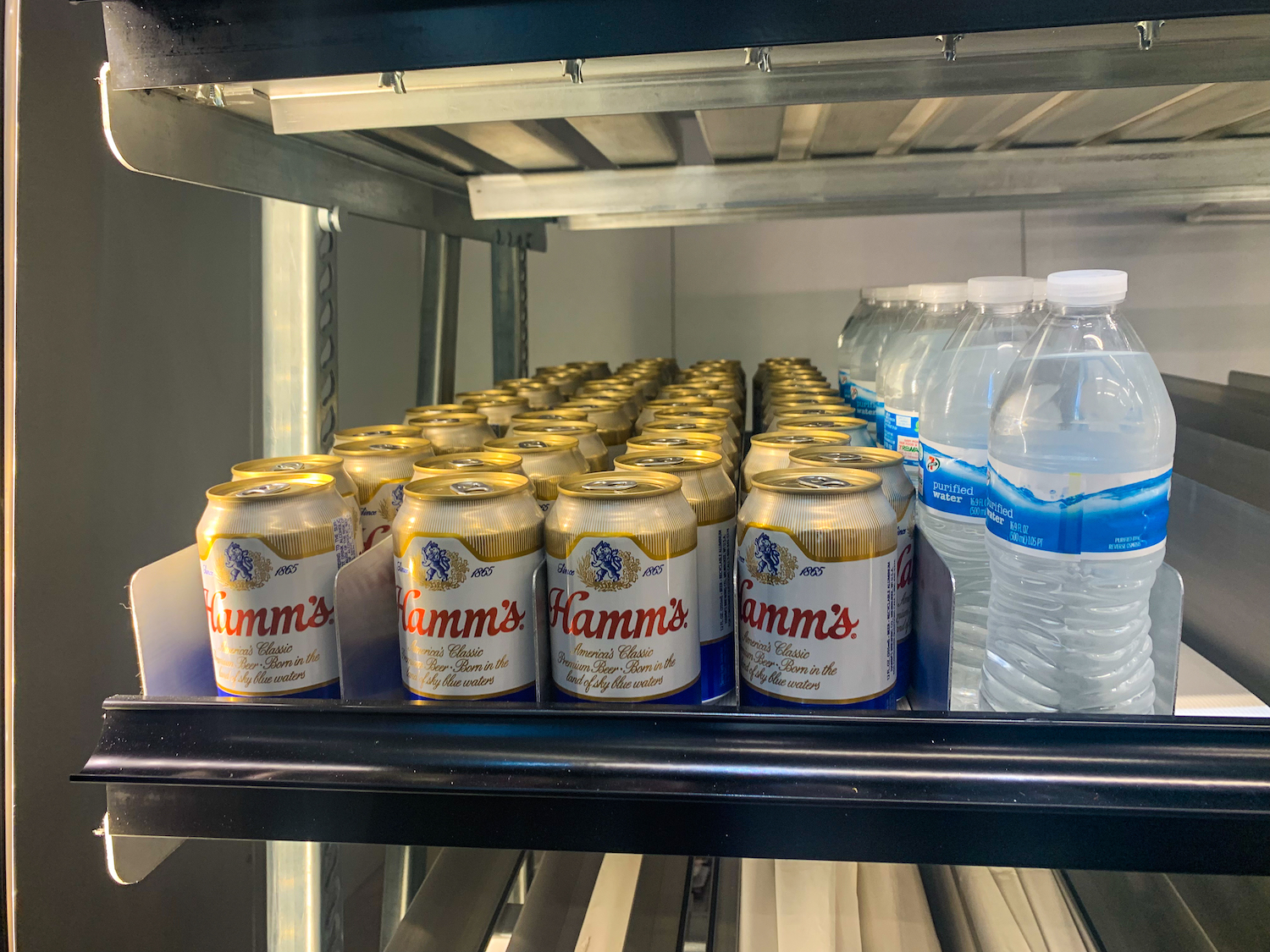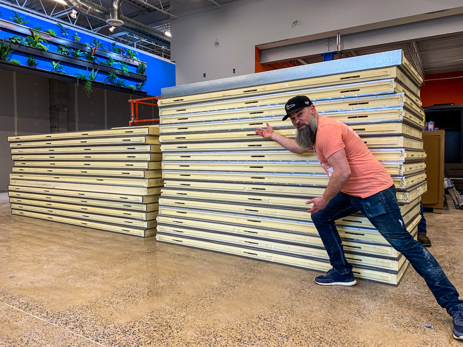 When we started drawing up our plans for Dabbler Depot, we knew that we were going to need an awesome cooler system to keep all of our beer as fresh as possible. Our staff and cooler installers worked as a team to carry and place every single one of these panels, doors, and pieces of machinery that form our coolers. We now have a 567 square foot upstairs cooler unit with 18 doors and a basement cooler with additional 187 sqr feet of storage space. As you can see from the photos, we’ve already got one small section of the fridge filled with our construction zone essentials: bottled water and Hamm’s!
