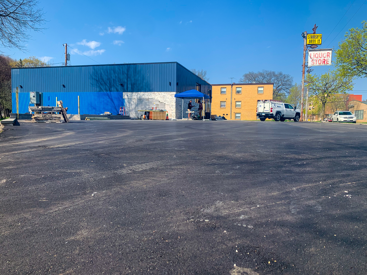 Our parking lot’s asphalt was in a pretty sorry state when we took over the store, so we tore all of that up and called in the experts to give us a fresh new blacktop for you to walk and park on. Additionally, our team did some serious landscaping work to rehabilitate what will eventually be our patio and food truck area. We dug out mounds of stone, dirt, and asphalt, and cut and placed hundreds of stones for a retaining wall, and more!