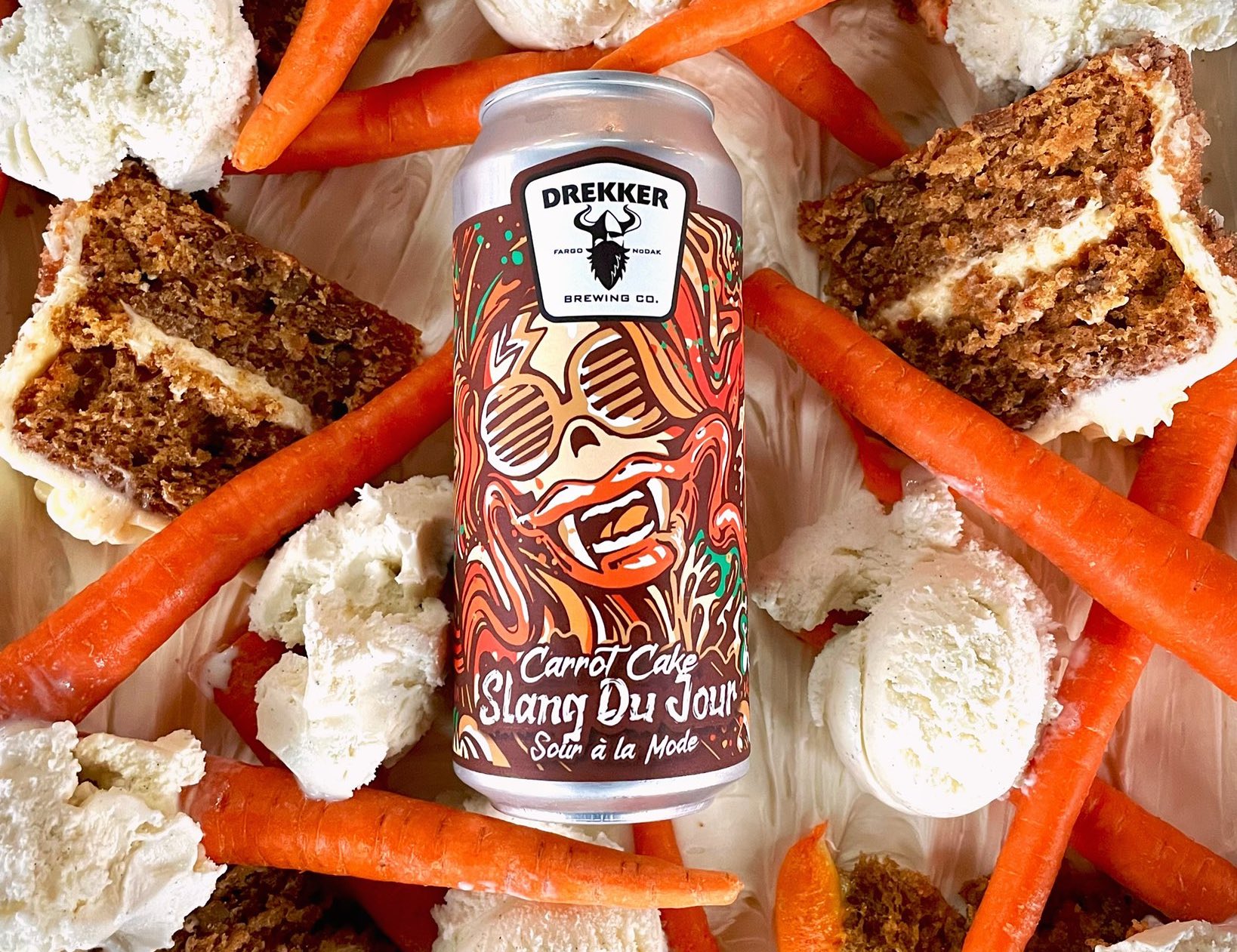 Drekker Brewing Carrot Cake Slang Du Jour – A dessert-inspired beer with carrot juice, granola, cream cheese, cinnamon, brown sugar, vanilla, and lactose.