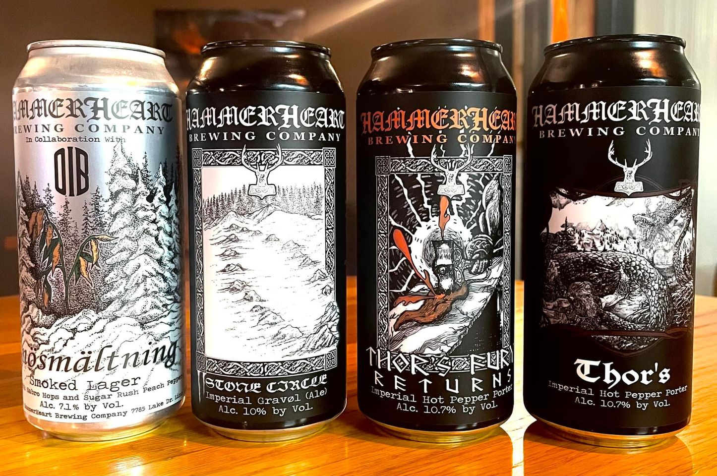 - Stone Circle – “This is the final beer brewed and canned at the Lino Brewery. It is a big Gravøl, smoked with some cocoa nibs. This style is something like a big dark ale,” HammerHeart explains.